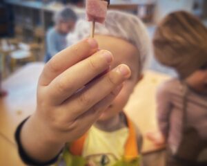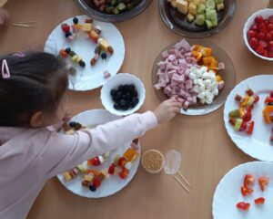 Celem zajęć jest rozwijanie aktywności, samodzielności oraz świadomości dotyczącej prawidłowych nawyków żywieniowych i higienicznych. Dzieci poznają nowe smaki, doświadczają, kroją, mieszają. Podczas zajęć mają okazję własnoręcznie przyrządzać potrawy: owocowe szaszłyki, sałatki, koktajle, pasty, pizza, chleb, pierniki. Poznają sprzęty oraz urządzenia kuchenne, stosując zasady bezpieczeństwa.
