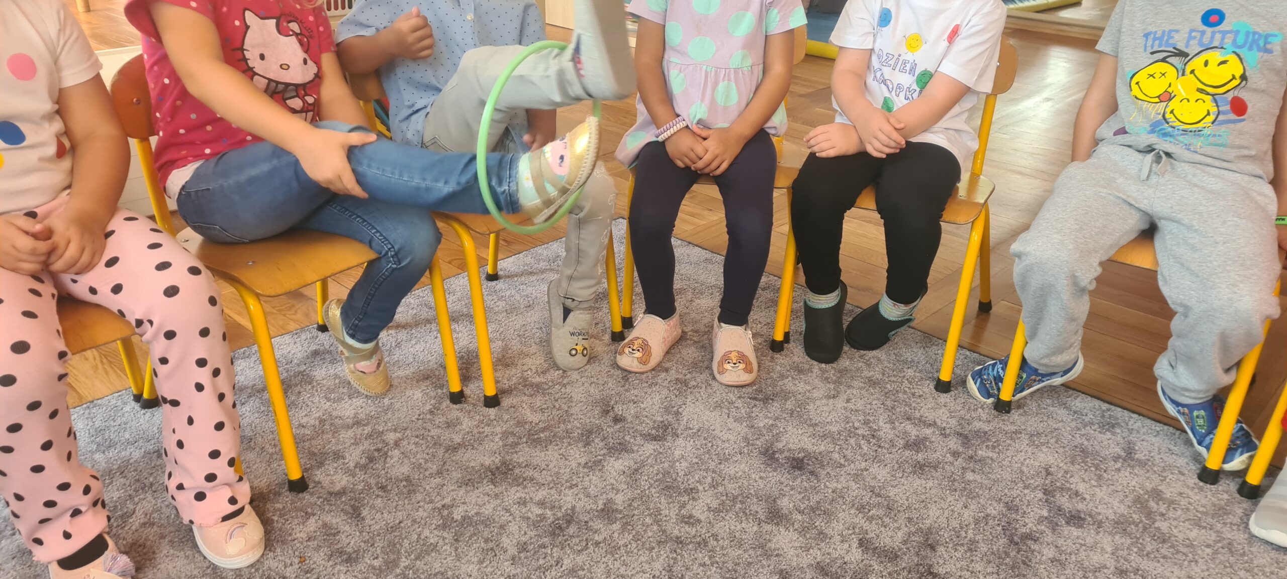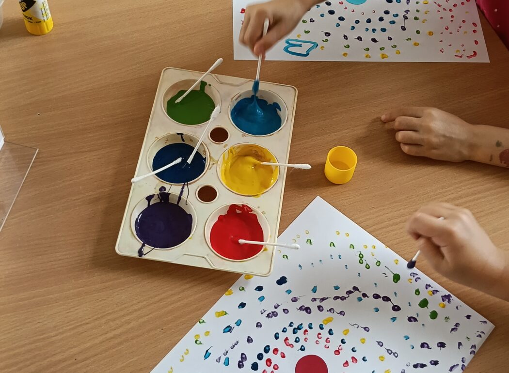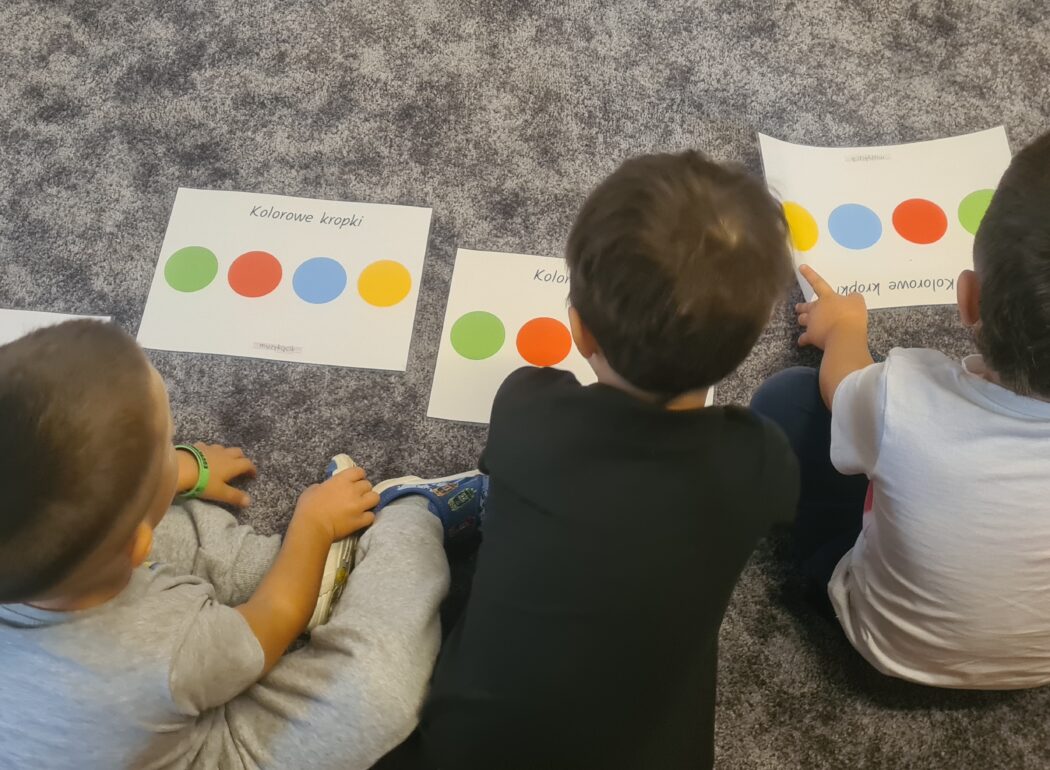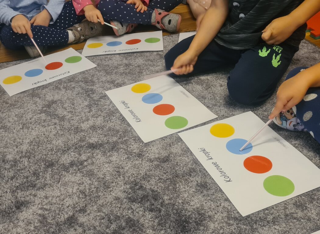 Z okazji Dnia Kropki w „Chaberkach” poznaliśmy historię małej dziewczynki Vashti, która myślała, że nie potrafi rysować. Oczywiście, gdy tylko spróbowała okazało się, że ma wielki talent. My też opowiadaliśmy o swoich talentach. W naszej grupie są dzieci, które potrafią szybko sprzątać, pomagać innym, opiekować się rodzeństwem, nurkować, głośno płakać, a nawet driftować. Reszta dnia upłynęła kropeczkowo. Bawiliśmy się w rytm piosenek „Podajemy kropki” i „Kolorowe kropki”, z kropkami ćwiczyliśmy orientację w schemacie ciała, uważne słuchanie, przeliczanie oraz wystukiwanie rytmu. Zrobiliśmy też „Pana Kropeczkę” oraz rozwijaliśmy motorykę dużą podając sobie krążek bez użycia rąk.