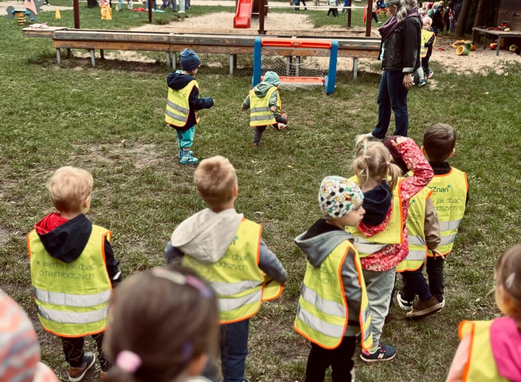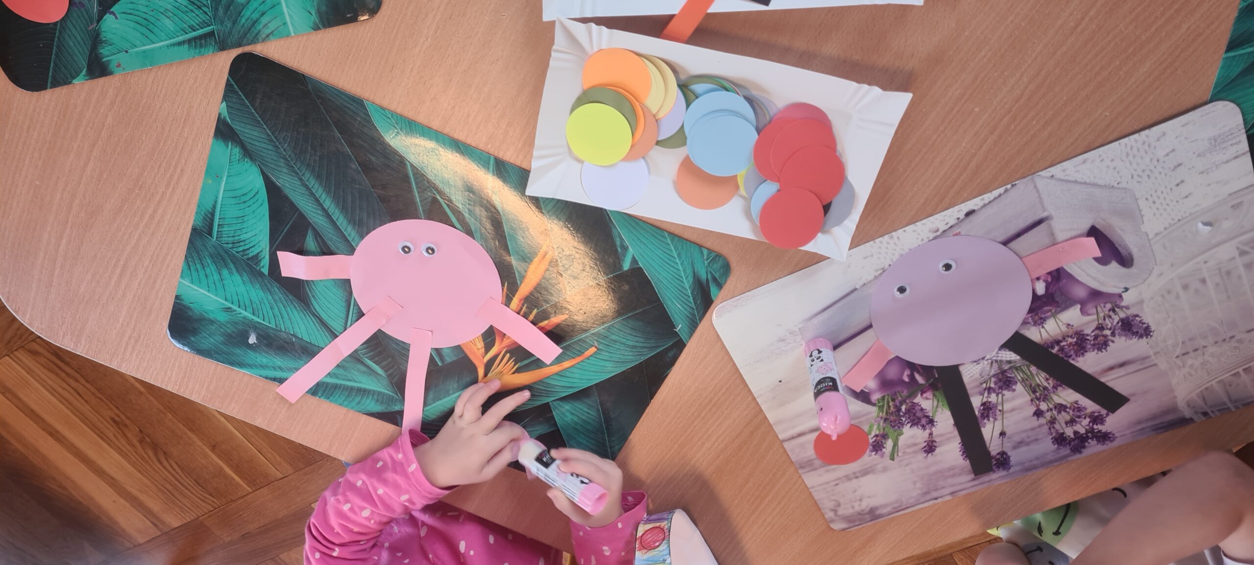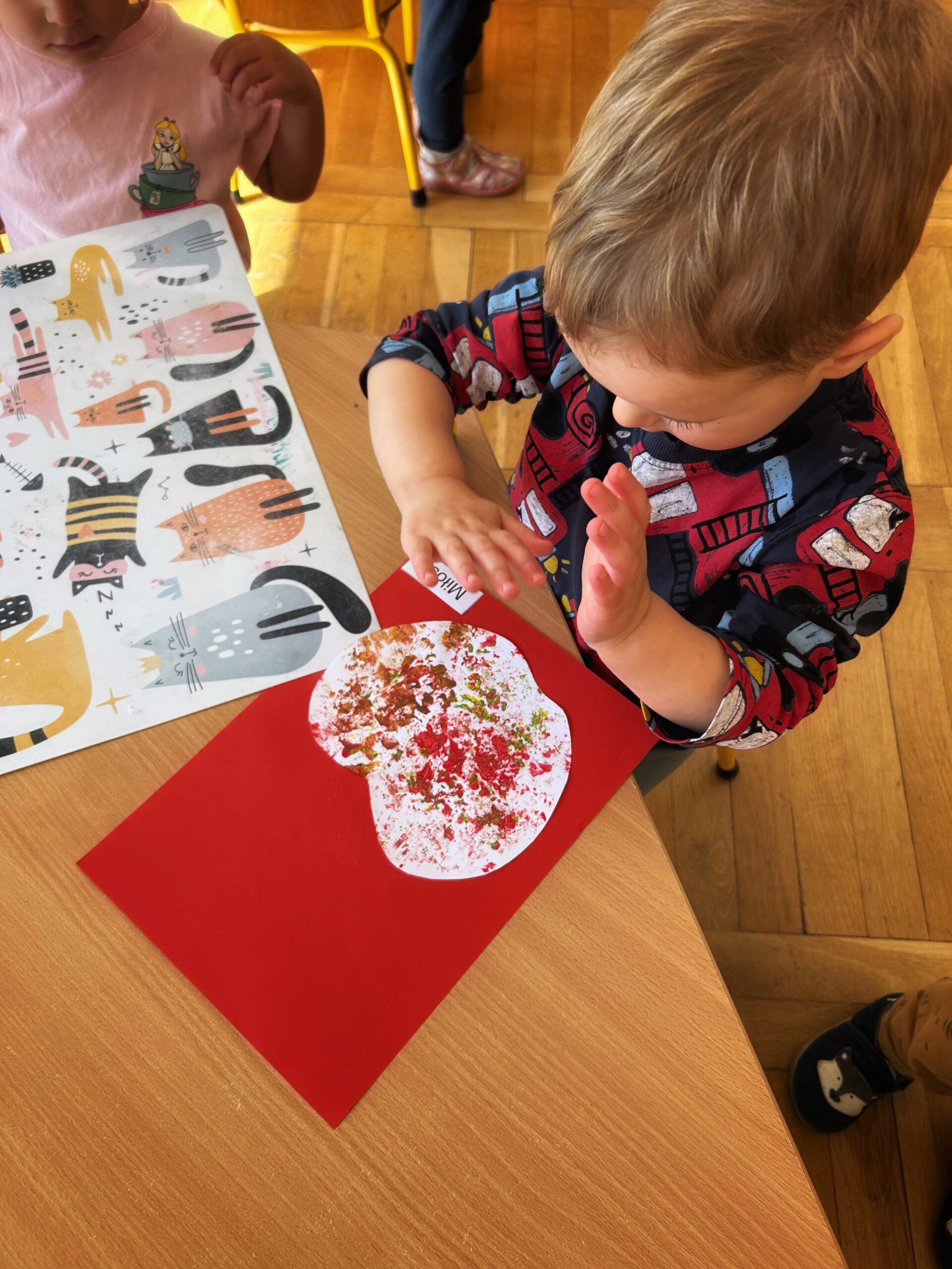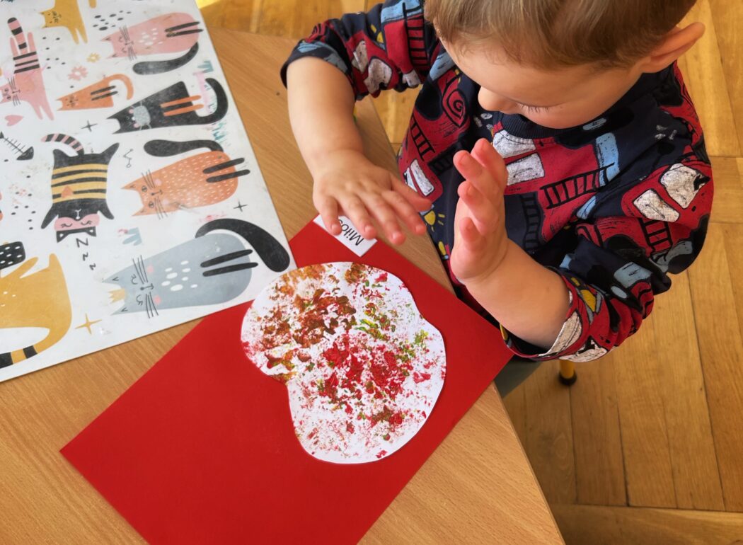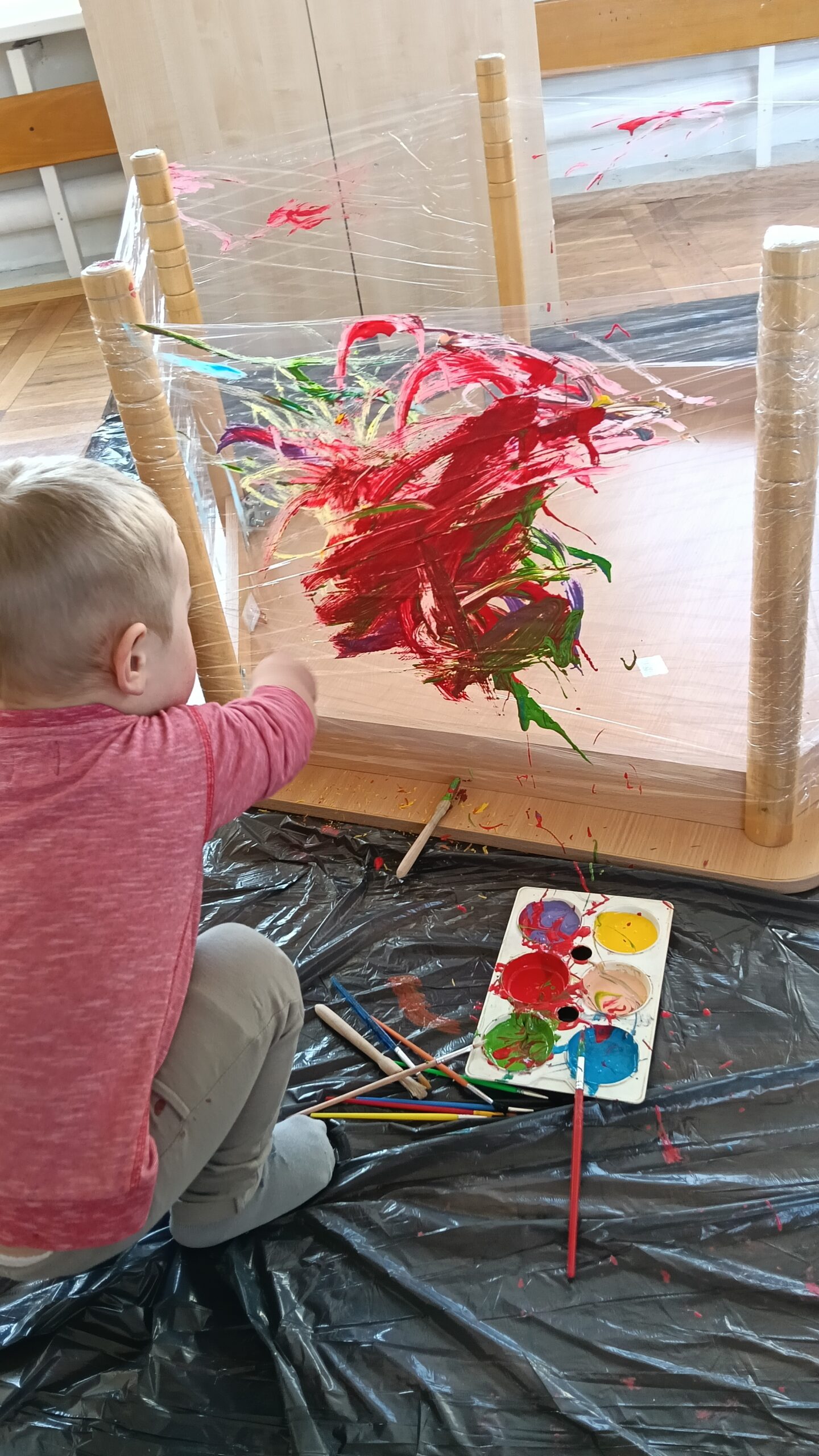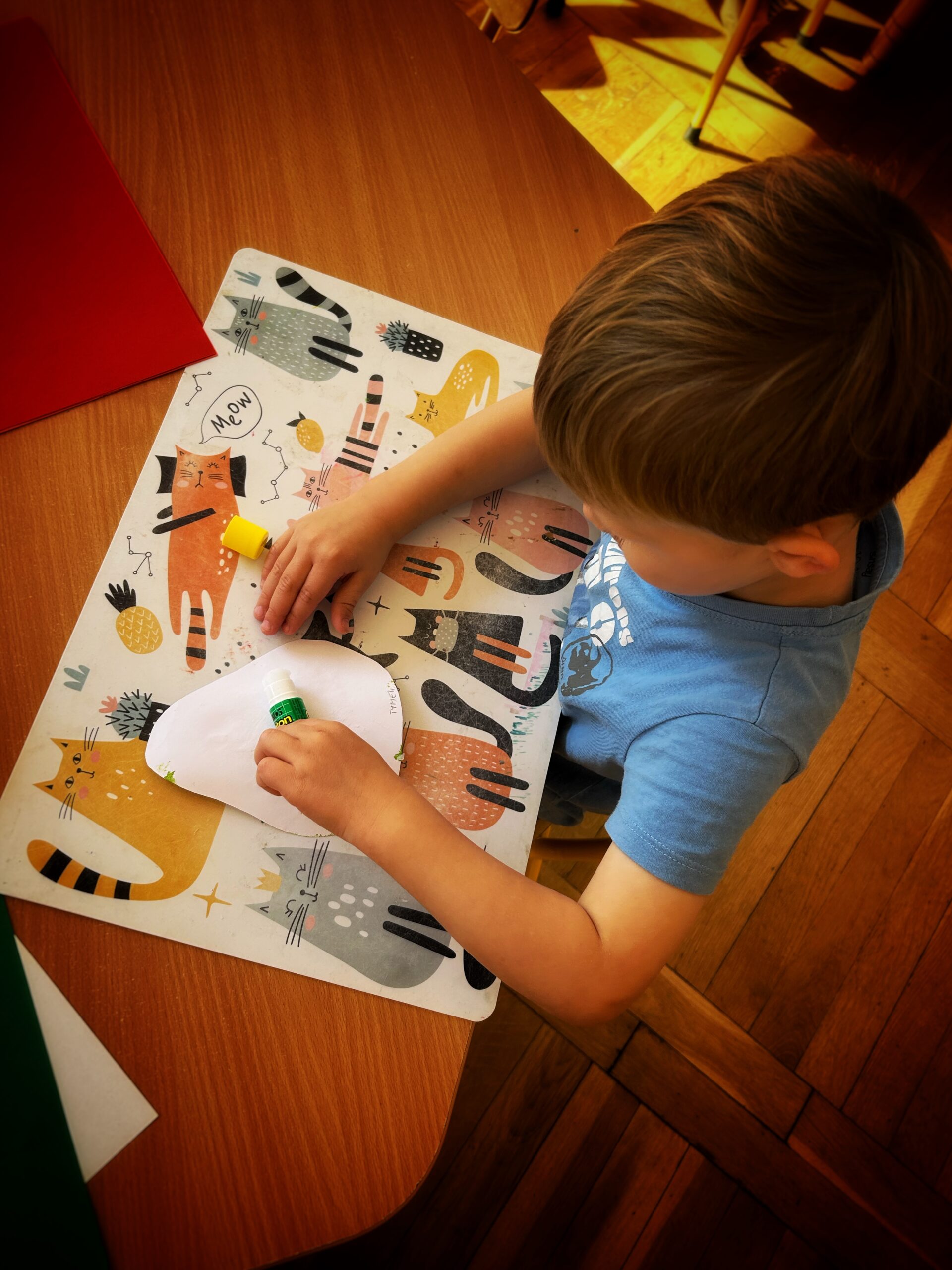 Dziś ubraliśmy rękawice i ruszyliśmy sprzątać okolice przedszkola. Okazało się, że to zadanie wymagało dużej uważności, ponieważ mieszkańcy naszego osiedla dbają o czystość. Po powrocie obejrzeliśmy teatrzyk pacynkowy „Papierek po cukierku” i używając czterech kroków empatycznej komunikacji omówiliśmy go. Przypomnieliśmy sobie też kolory koszy na śmieci i wykonaliśmy pracę plastyczną.