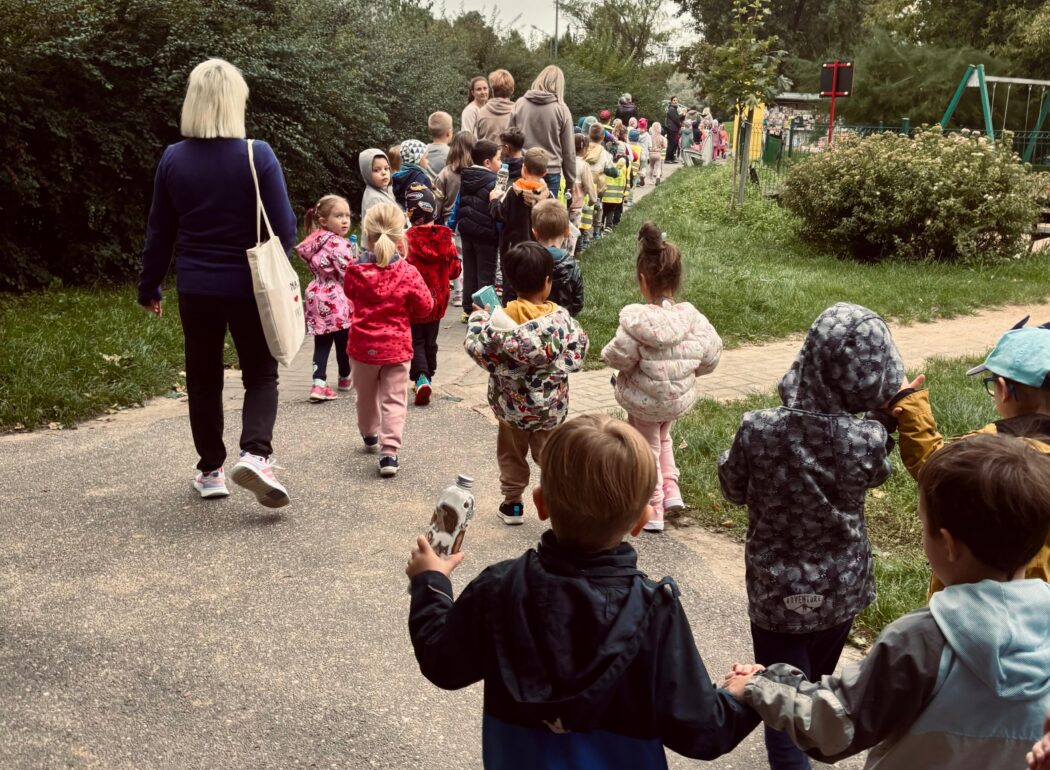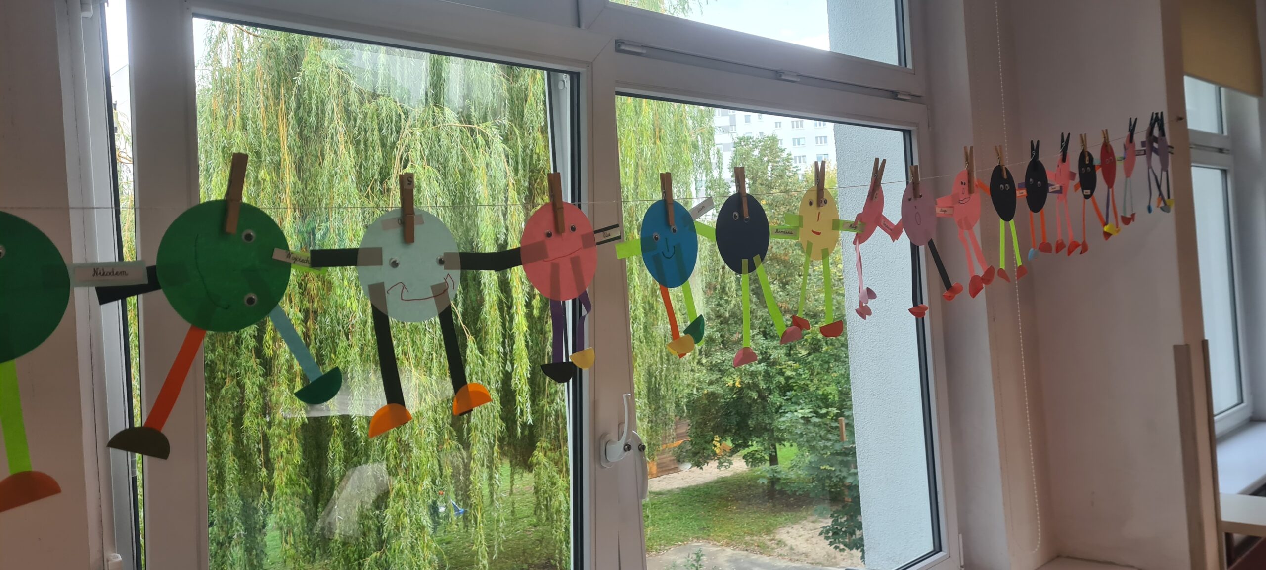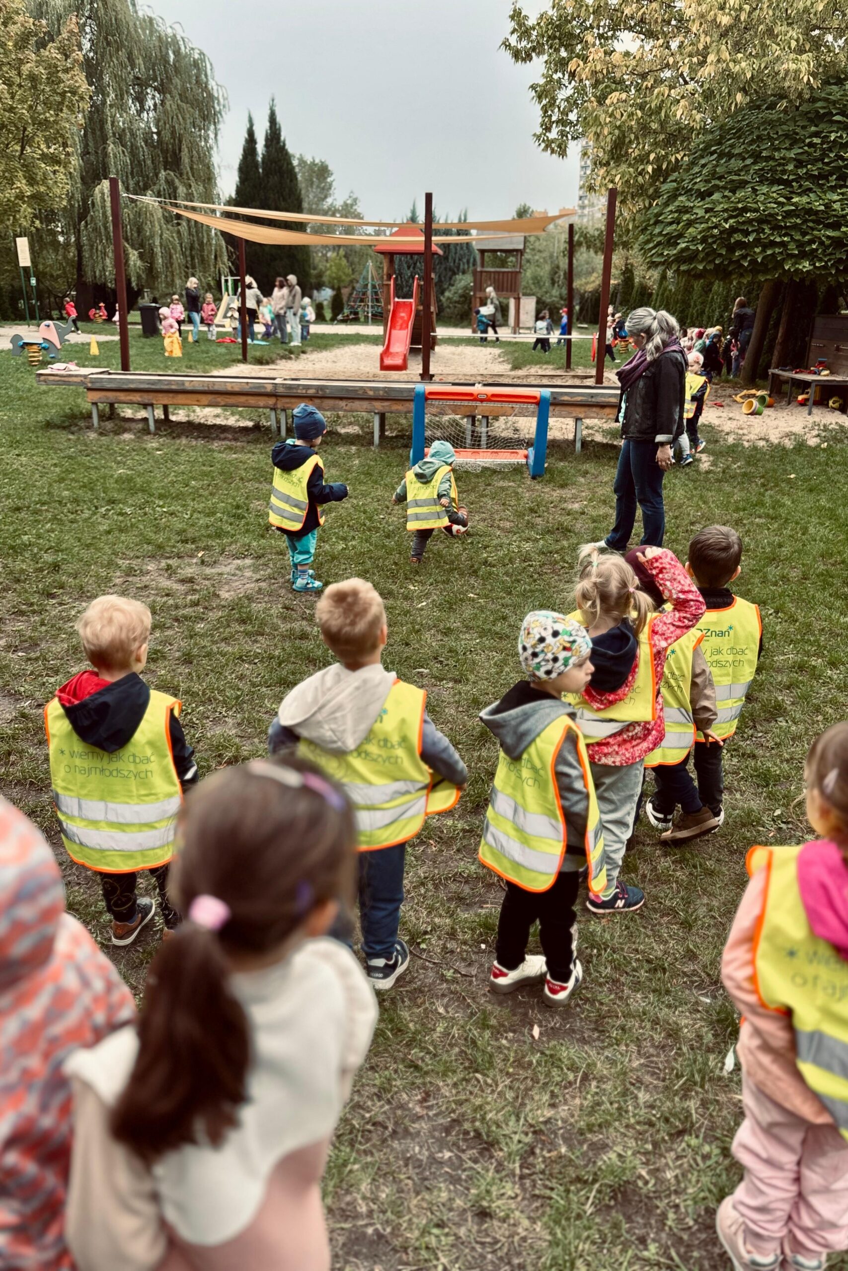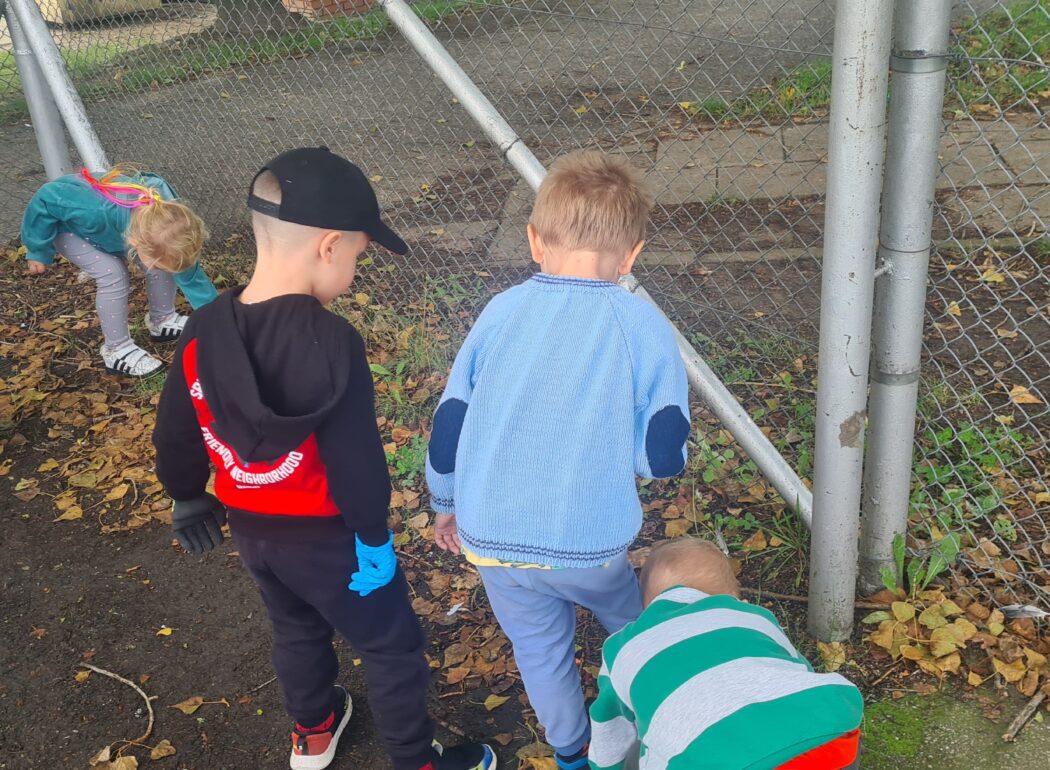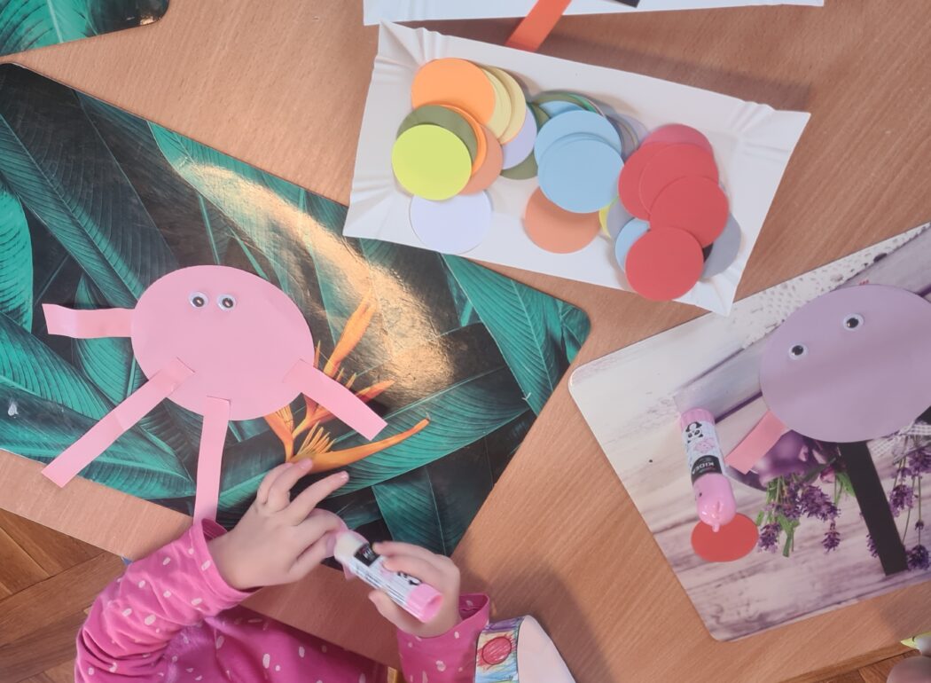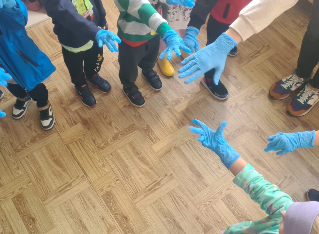 Dziś ubraliśmy rękawice i ruszyliśmy sprzątać okolice przedszkola. Okazało się, że to zadanie wymagało dużej uważności, ponieważ mieszkańcy naszego osiedla dbają o czystość. Po powrocie obejrzeliśmy teatrzyk pacynkowy „Papierek po cukierku” i używając czterech kroków empatycznej komunikacji omówiliśmy go. Przypomnieliśmy sobie też kolory koszy na śmieci i wykonaliśmy pracę plastyczną.
