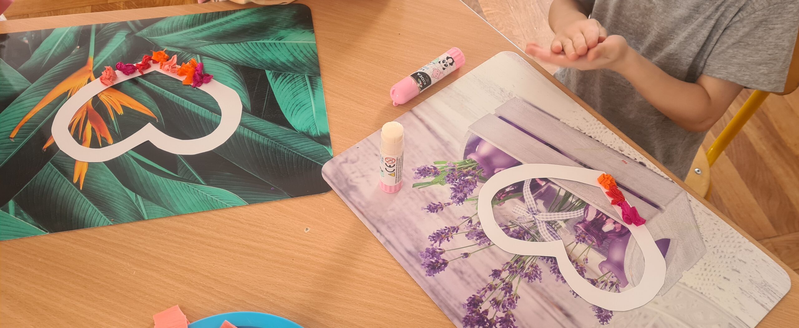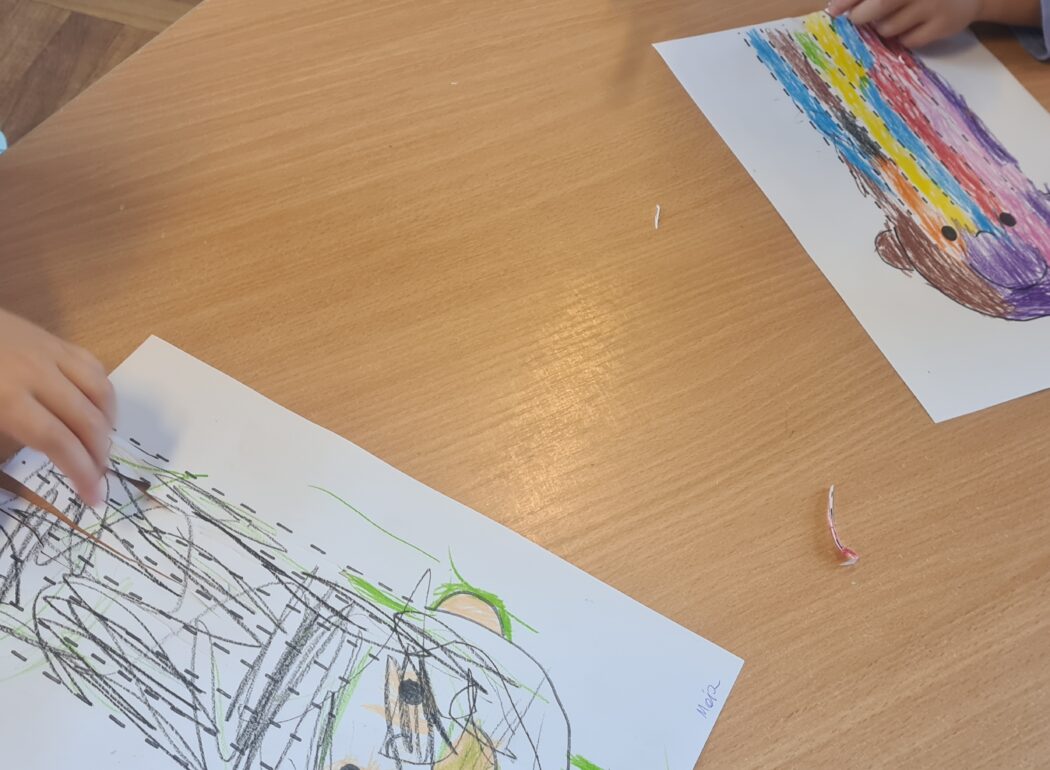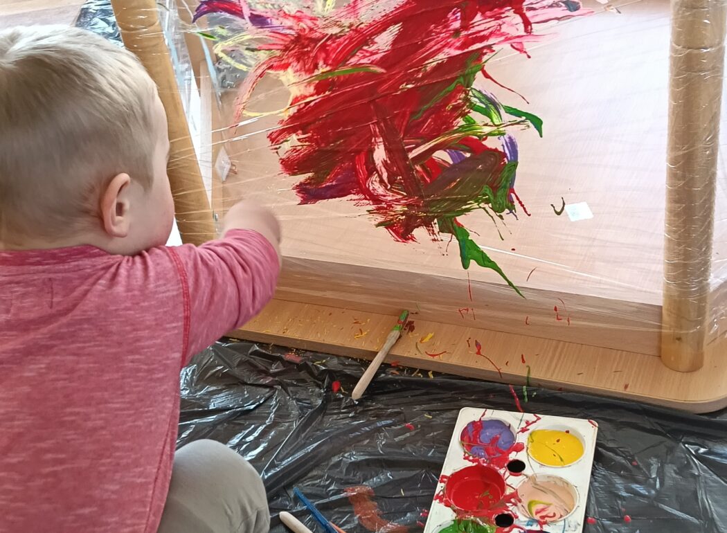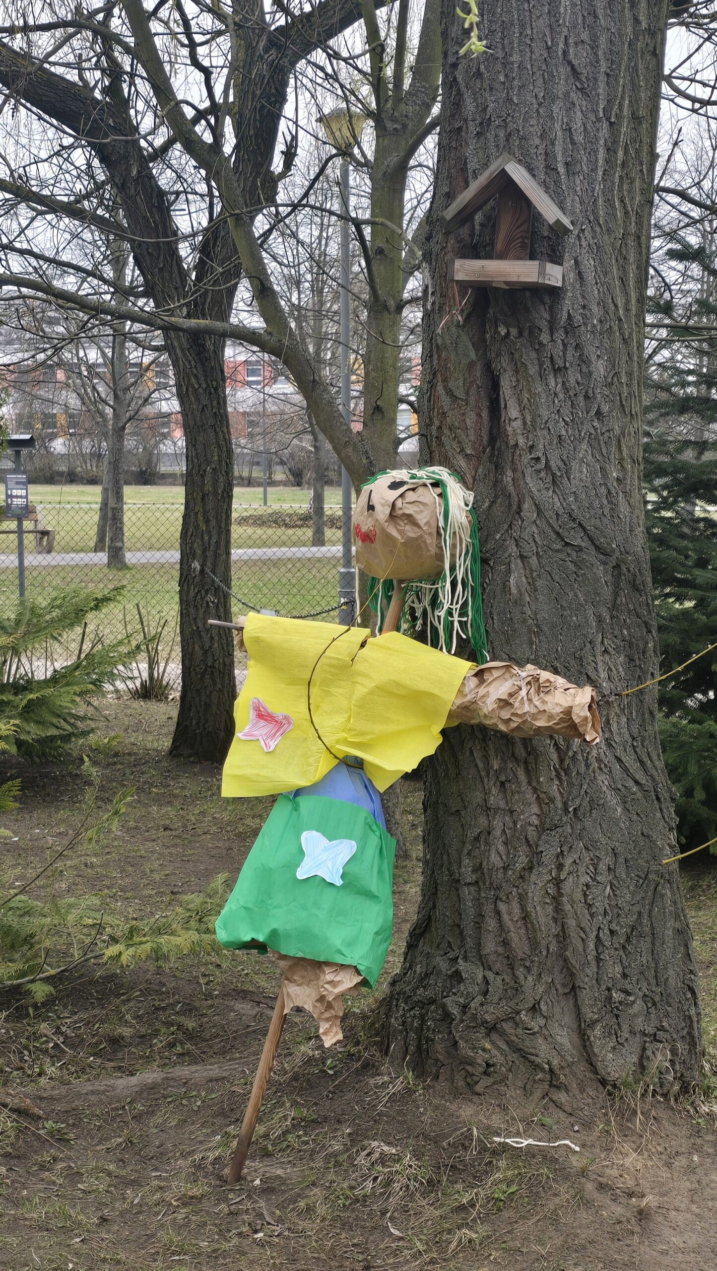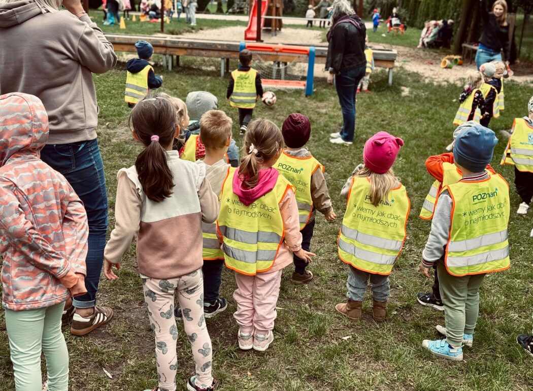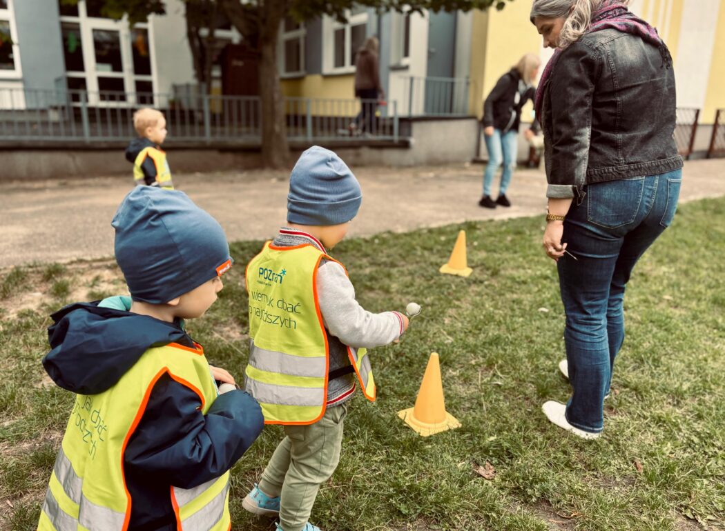 Dziś ubraliśmy rękawice i ruszyliśmy sprzątać okolice przedszkola. Okazało się, że to zadanie wymagało dużej uważności, ponieważ mieszkańcy naszego osiedla dbają o czystość. Po powrocie obejrzeliśmy teatrzyk pacynkowy „Papierek po cukierku” i używając czterech kroków empatycznej komunikacji omówiliśmy go. Przypomnieliśmy sobie też kolory koszy na śmieci i wykonaliśmy pracę plastyczną.