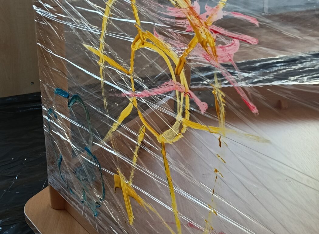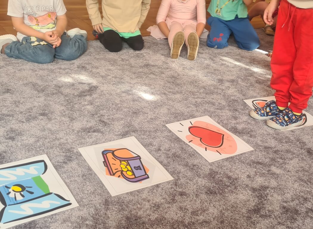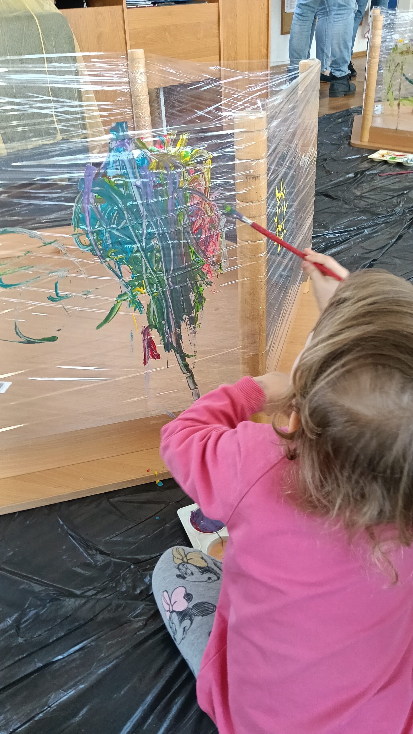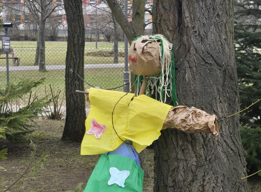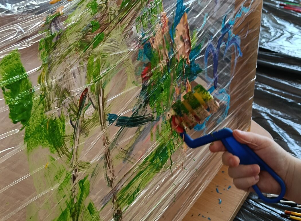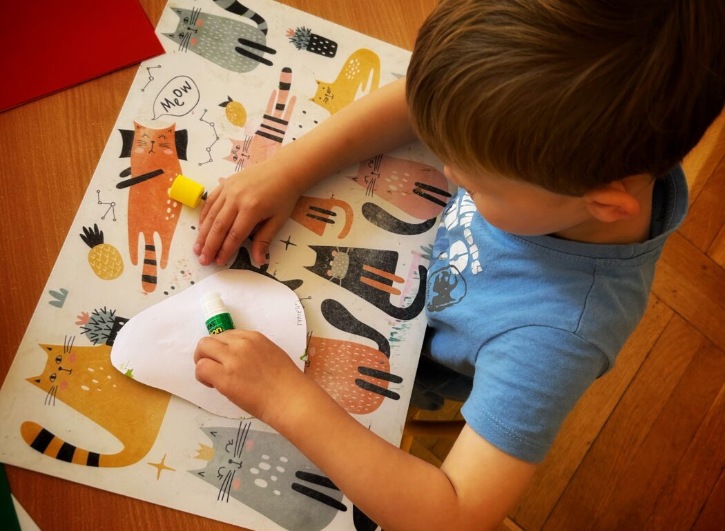 Dziś ubraliśmy rękawice i ruszyliśmy sprzątać okolice przedszkola. Okazało się, że to zadanie wymagało dużej uważności, ponieważ mieszkańcy naszego osiedla dbają o czystość. Po powrocie obejrzeliśmy teatrzyk pacynkowy „Papierek po cukierku” i używając czterech kroków empatycznej komunikacji omówiliśmy go. Przypomnieliśmy sobie też kolory koszy na śmieci i wykonaliśmy pracę plastyczną.