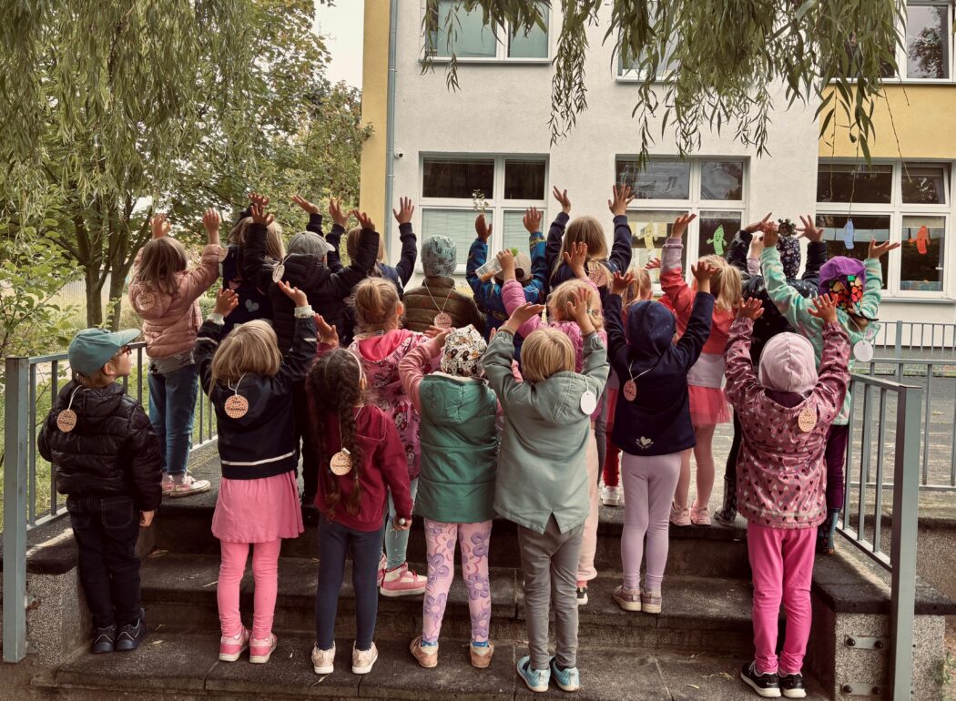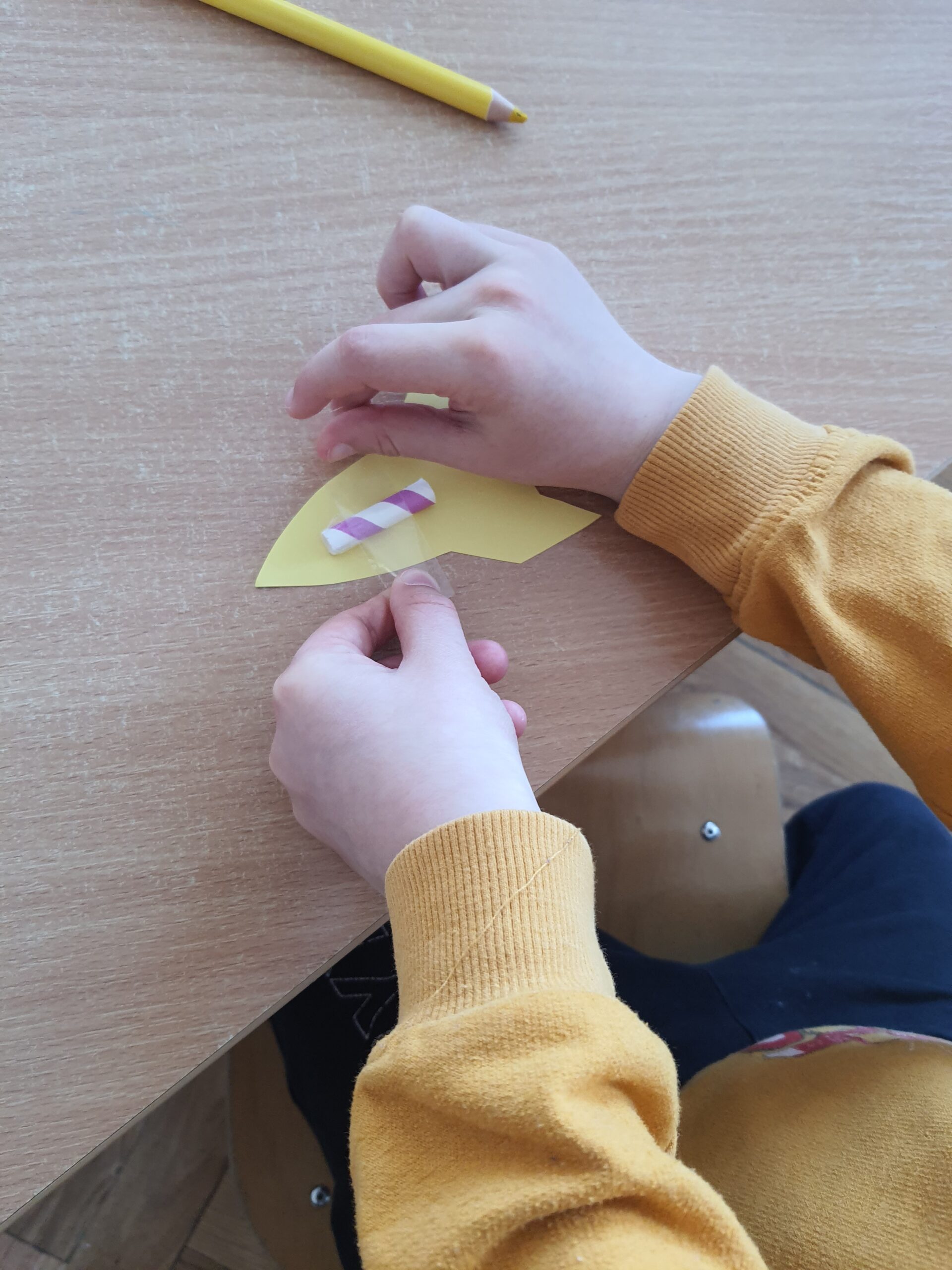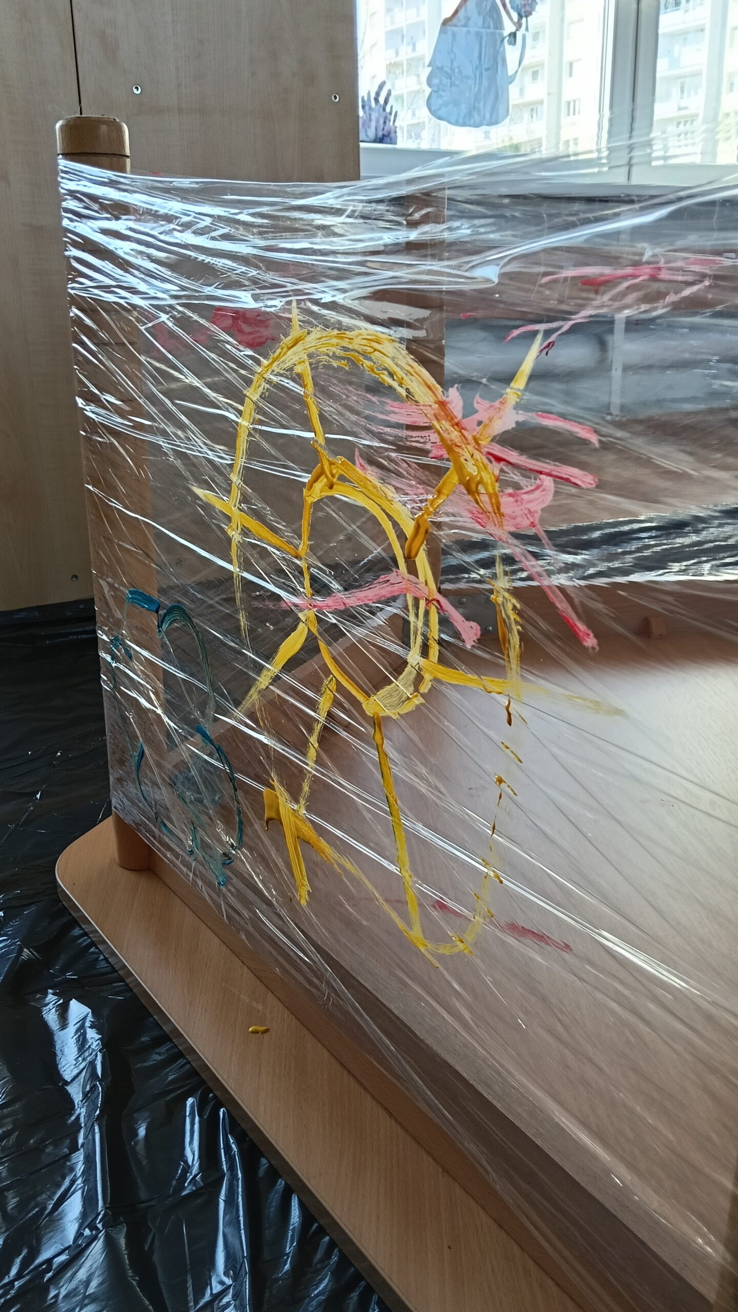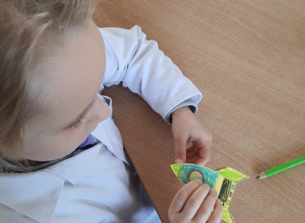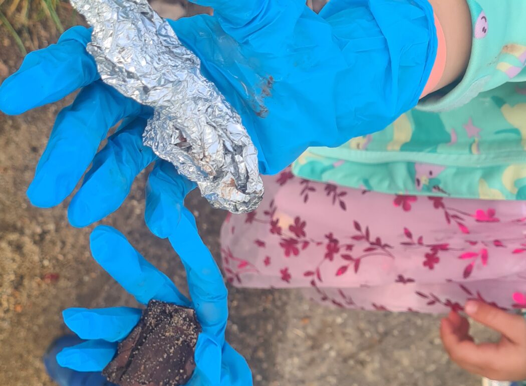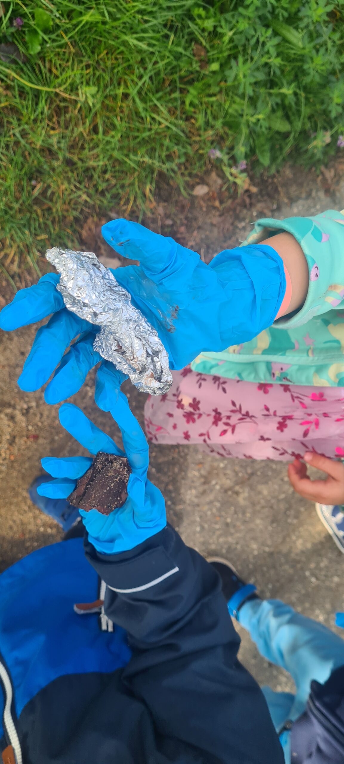 Dziś ubraliśmy rękawice i ruszyliśmy sprzątać okolice przedszkola. Okazało się, że to zadanie wymagało dużej uważności, ponieważ mieszkańcy naszego osiedla dbają o czystość. Po powrocie obejrzeliśmy teatrzyk pacynkowy „Papierek po cukierku” i używając czterech kroków empatycznej komunikacji omówiliśmy go. Przypomnieliśmy sobie też kolory koszy na śmieci i wykonaliśmy pracę plastyczną.