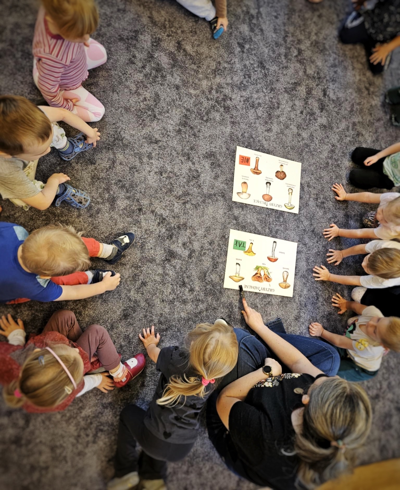 Z okazji Dnia Grzyba rozmawialiśmy dziś na temat grzybów trujących i jadalnych. Posiłkując się czytaniem globalnym określaliśmy, czy danego grzyba zbieramy (tak), czy nie zbieramy (nie). Wiedzę utrwalaliśmy podczas zabawy ruchowej „grzybobranie”. Dowiedzieliśmy się także z jakich części składa się grzyb. A na koniec wykonaliśmy pracę plastyczną „Borowiki” ćwicząc sprawność manualną dłoni. Zapragnęliśmy udać się na prawdziwe grzybobranie do lasu. Trzymamy kciuki za owocne zbiory.