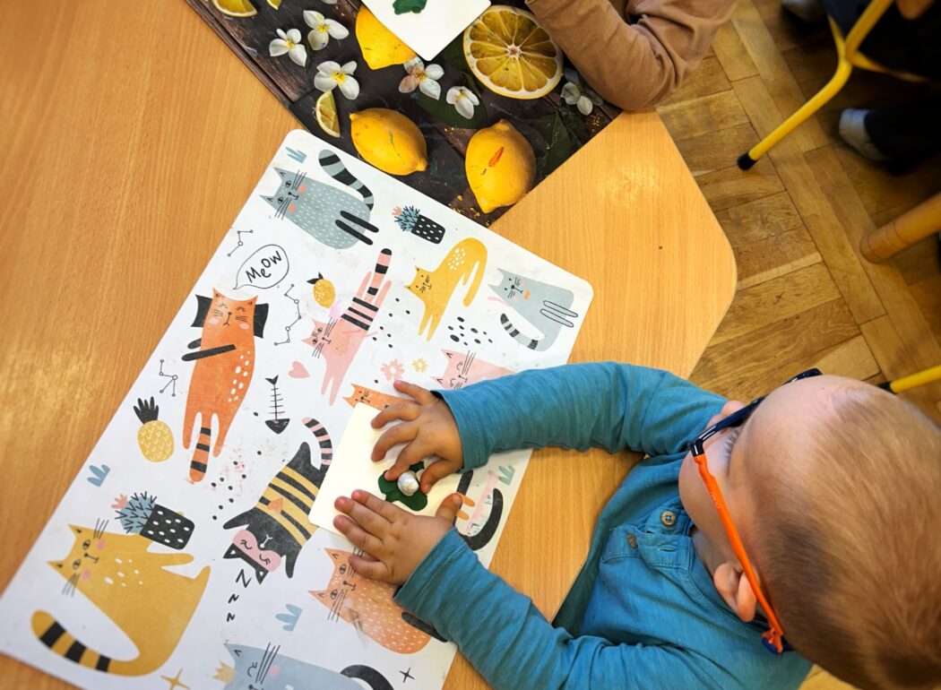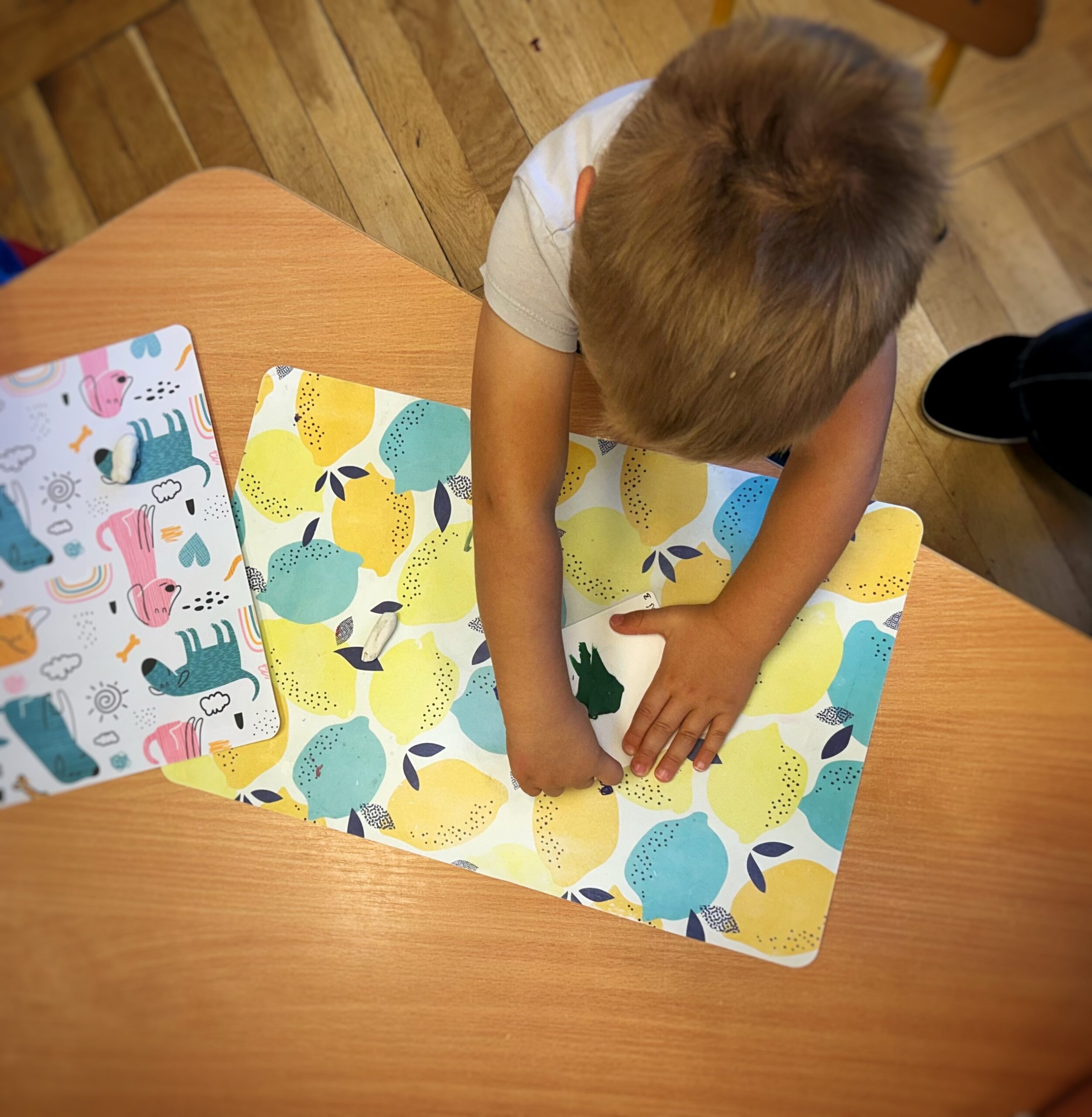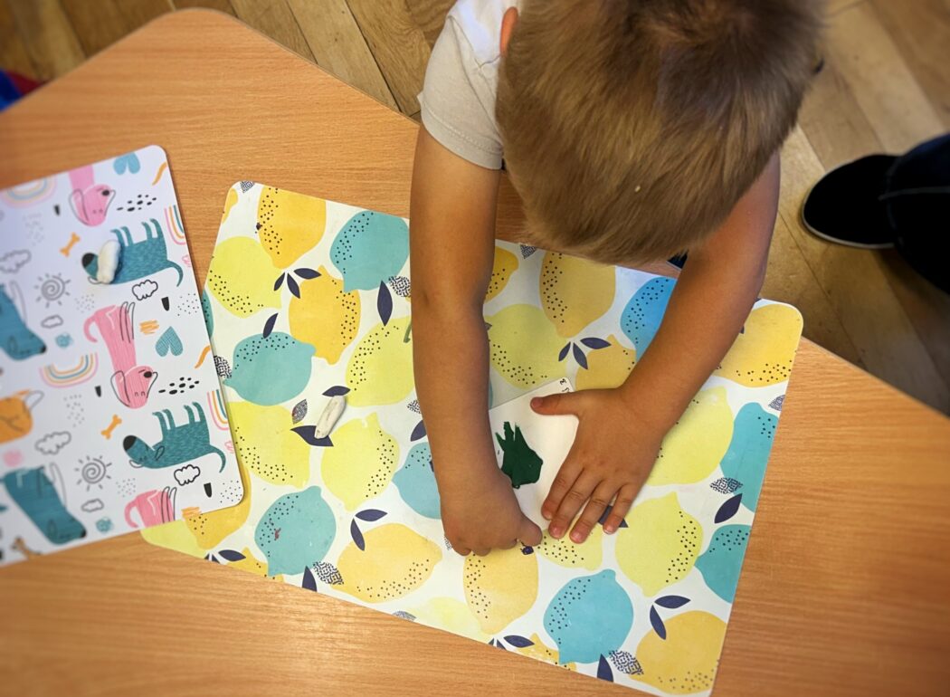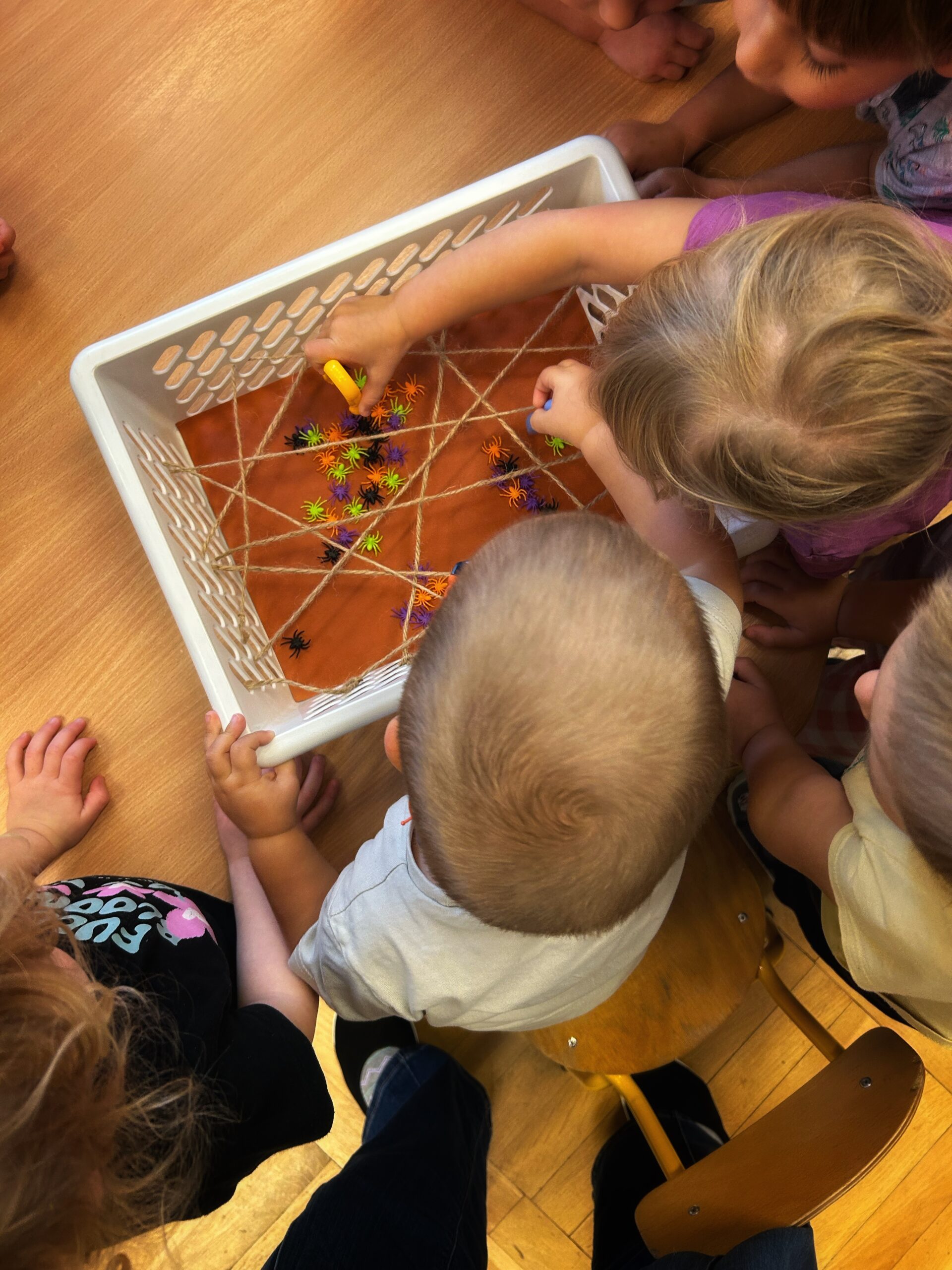 W ostatnim czasie nasze rączki mają sporo pracy. Wyciąganie pajączków za pomocą pęsety, tworzenie jesiennej korony drzew z wykorzystaniem ciastoliny i guzików, wyszukiwanie magnetycznych kółek w grochu i soczewicy, malowanie owoców folią aluminiową, klejenie, tworzenie kompozycji z różnych naklejek itp. Wszystko po to by rozwijać motorykę małą, koordynację ruchowa, sprawność palców i dłoni, ćwiczyć koncentrację, cierpliwość i dokładność, a także samodzielność.