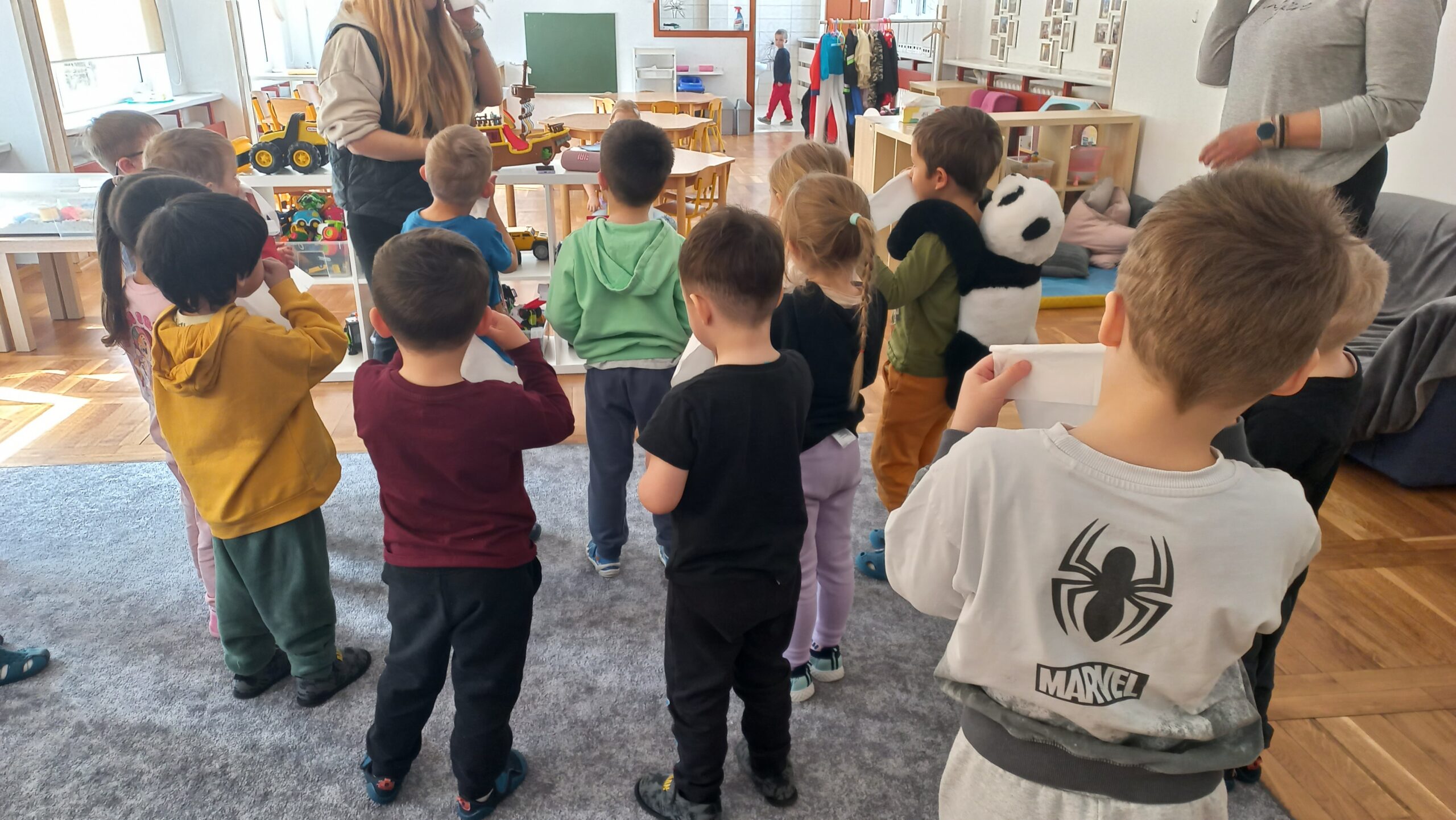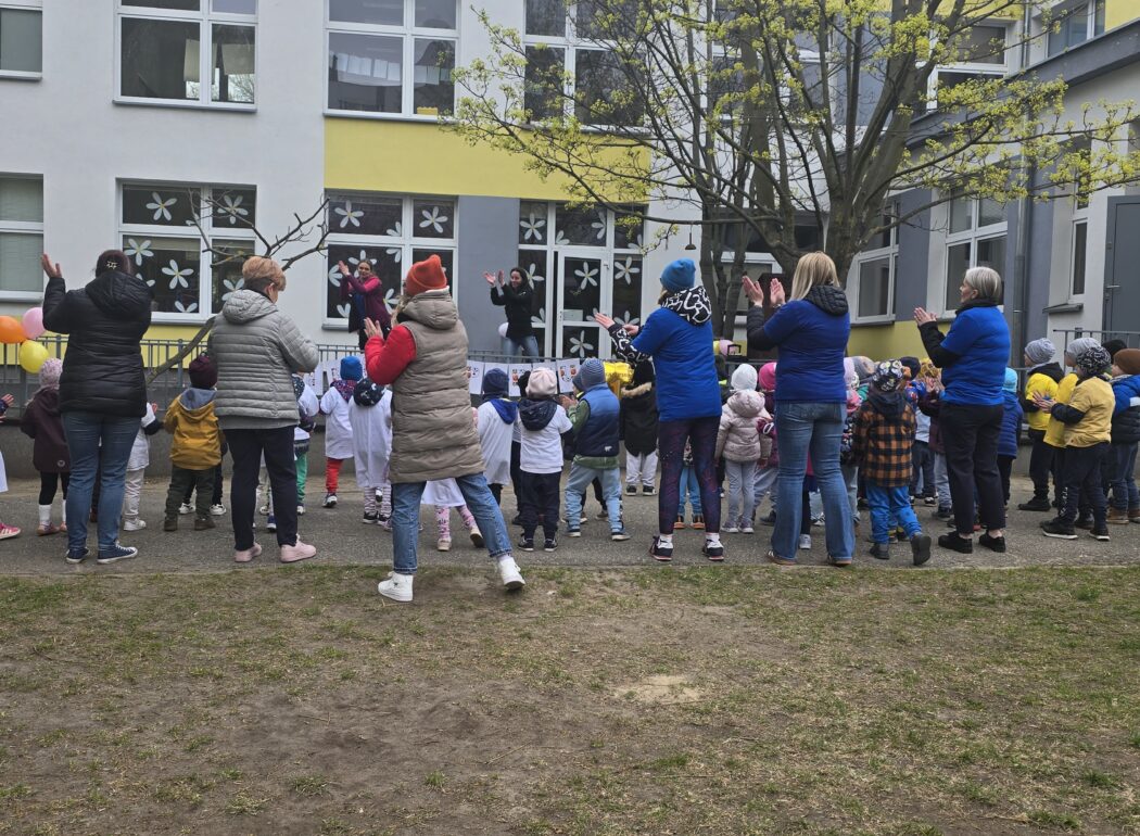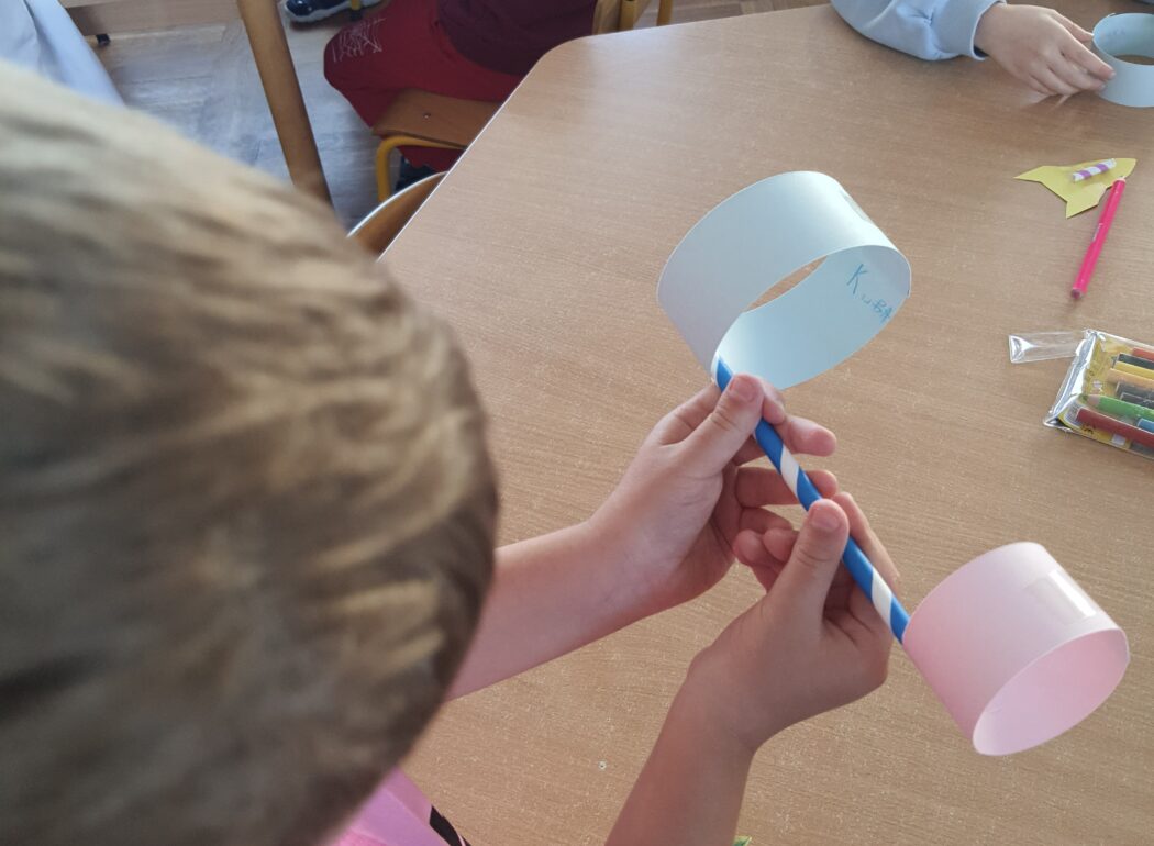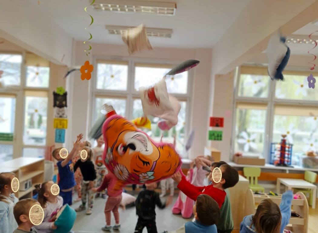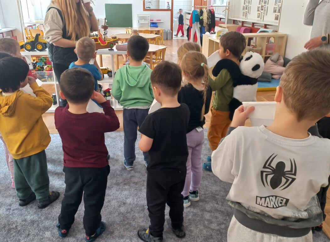 Od samego rana z dużym zaangażowaniem przygotowywaliśmy korony dla swoich koleżanek z grupy – by wszystkie wyglądały dziś wyjątkowo. Było „sto lat” i ogromne brawa dla każdej dziewczynki – aby poczuła się doceniona i zauważona. Następnie przyszedł czas na losowanie przez dziewczynki zabaw ze „słoika zabaw”, dzięki którym pojawiła się radosna atmosfera i sporo śmiechu. Na koniec wspólnymi siłami wyczarowaliśmy prezent dla naszych Stokrotek. Miło jest tak wspólnie świętować.