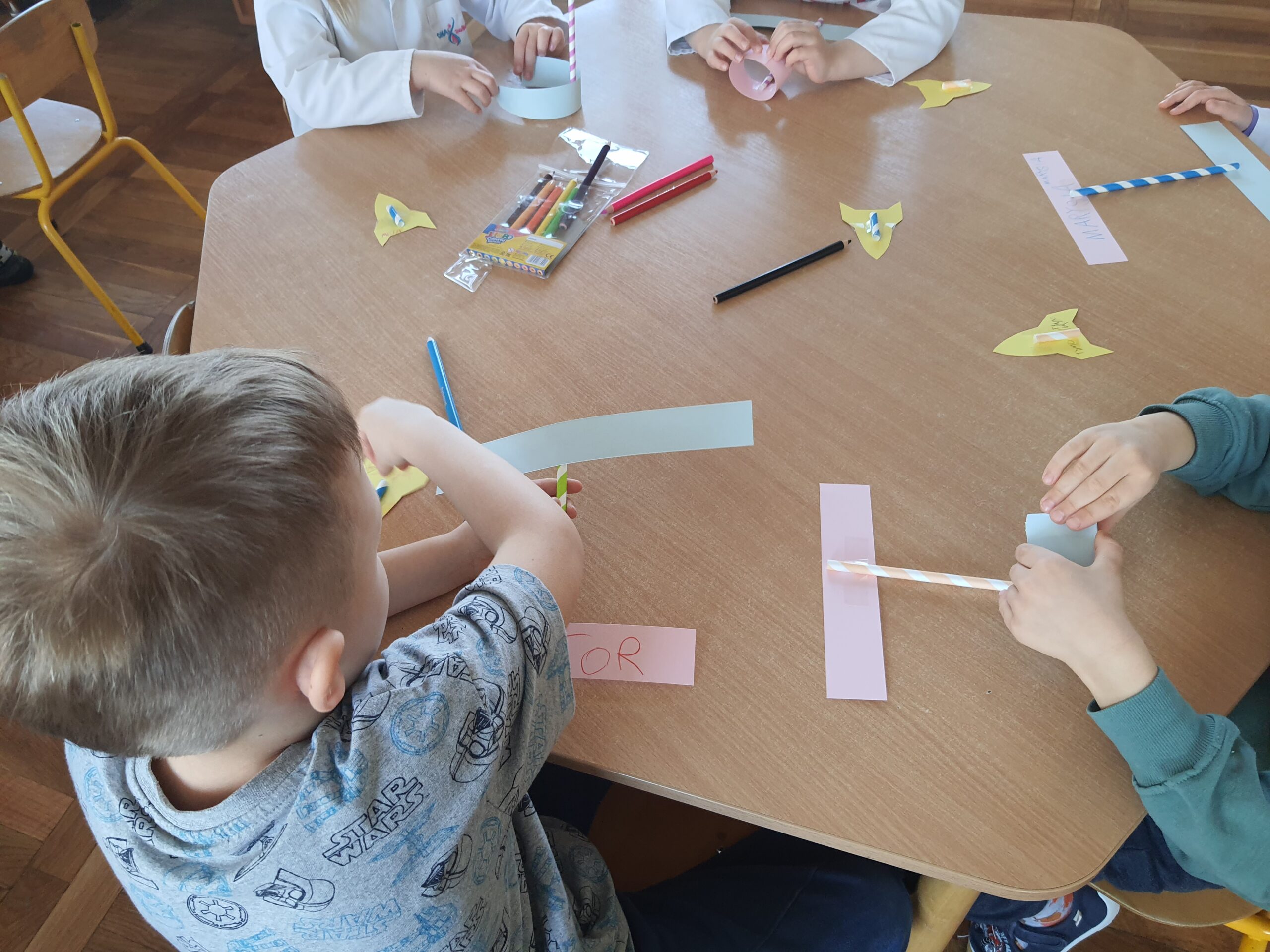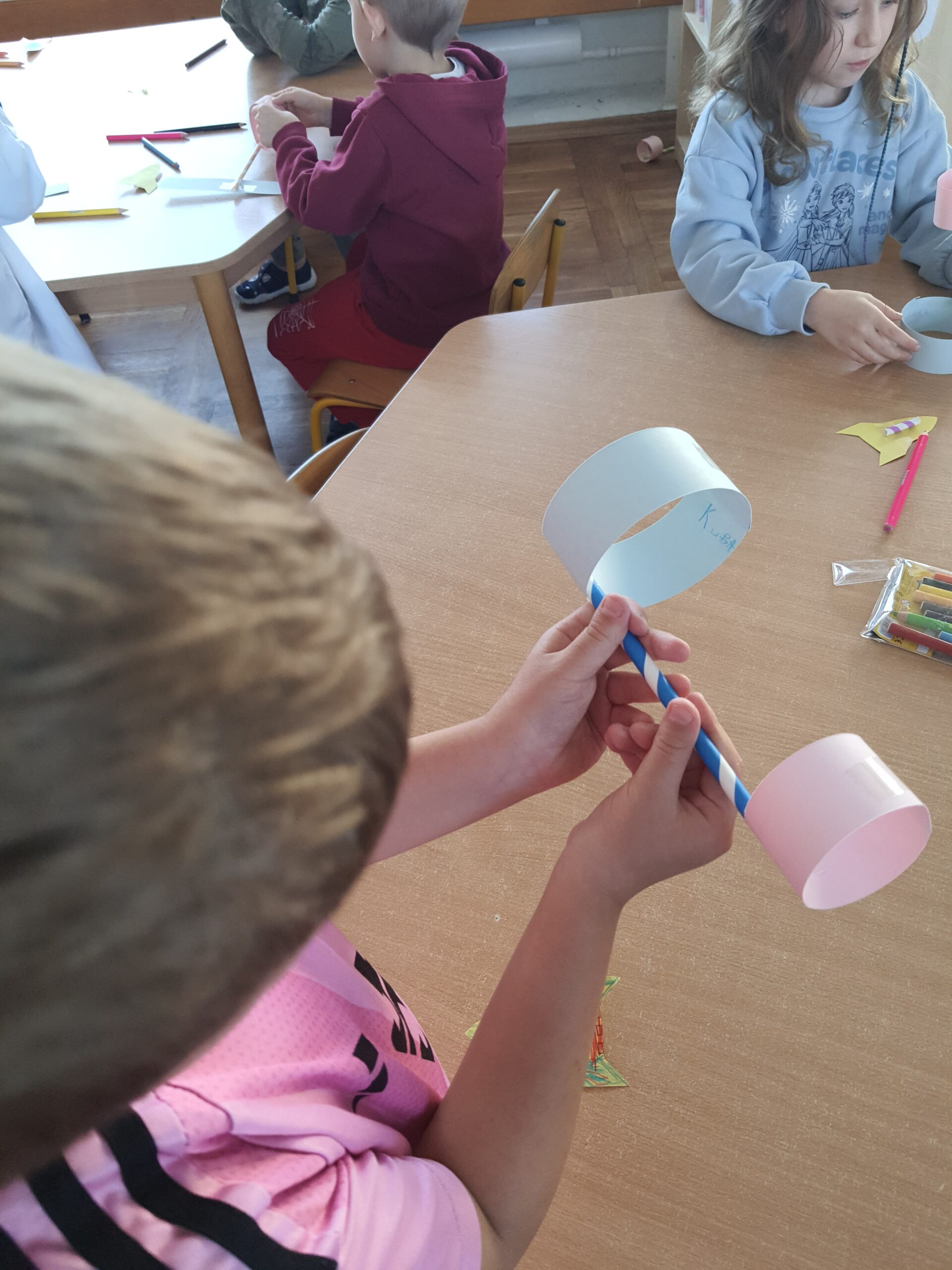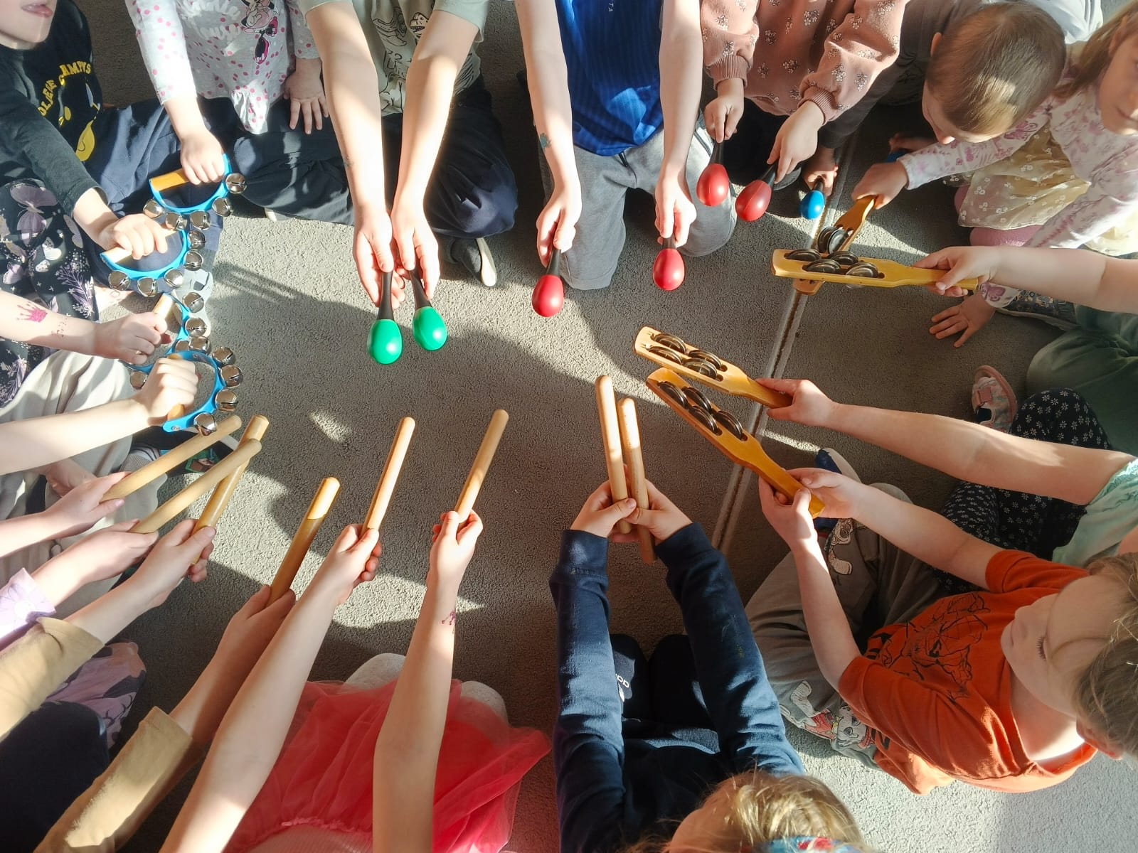 Od samego rana z dużym zaangażowaniem przygotowywaliśmy korony dla swoich koleżanek z grupy – by wszystkie wyglądały dziś wyjątkowo. Było „sto lat” i ogromne brawa dla każdej dziewczynki – aby poczuła się doceniona i zauważona. Następnie przyszedł czas na losowanie przez dziewczynki zabaw ze „słoika zabaw”, dzięki którym pojawiła się radosna atmosfera i sporo śmiechu. Na koniec wspólnymi siłami wyczarowaliśmy prezent dla naszych Stokrotek. Miło jest tak wspólnie świętować.