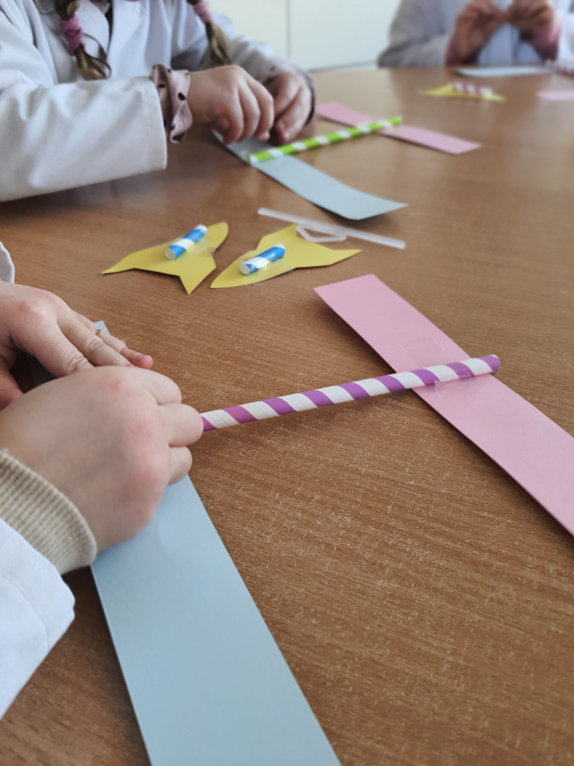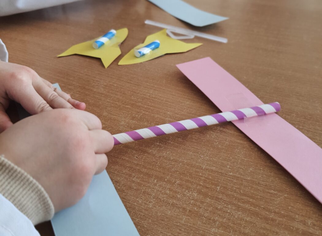 Dziś na zajęciach DNA zabawy dowiedzieliśmy się czym jest sprężystość. Następnie samodzielnie wykonaliśmy katapulty i wypróbowaliśmy je na dywanie