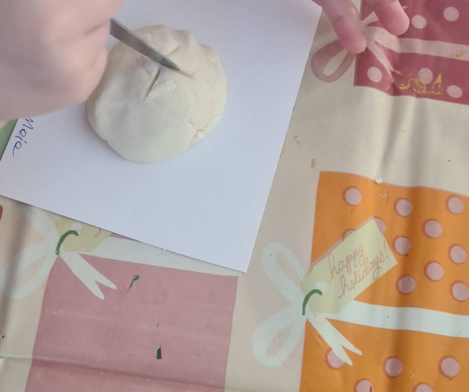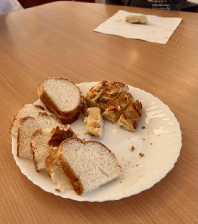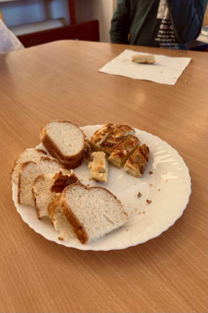 Następnie z masy solnej wykonaliśmy bułeczki (znamy przepis) oraz wybraliśmy się do prawdziwej piekarni, sprawdzić kto tam pracuje, czy panie mają tam kuchnie i co można tam kupić. Po powrocie zdegustowaliśmy zakupione pieczywo i naszkicowaliśmy, to co zapamiętaliśmy.