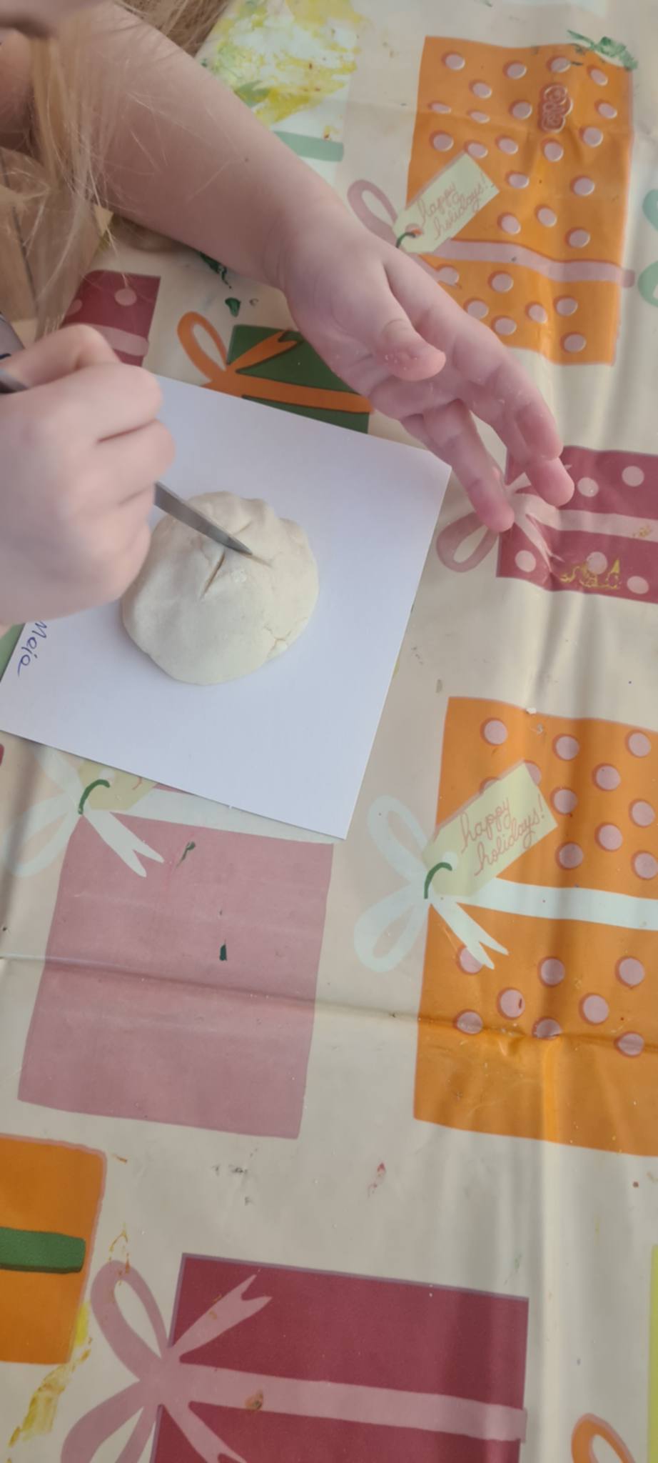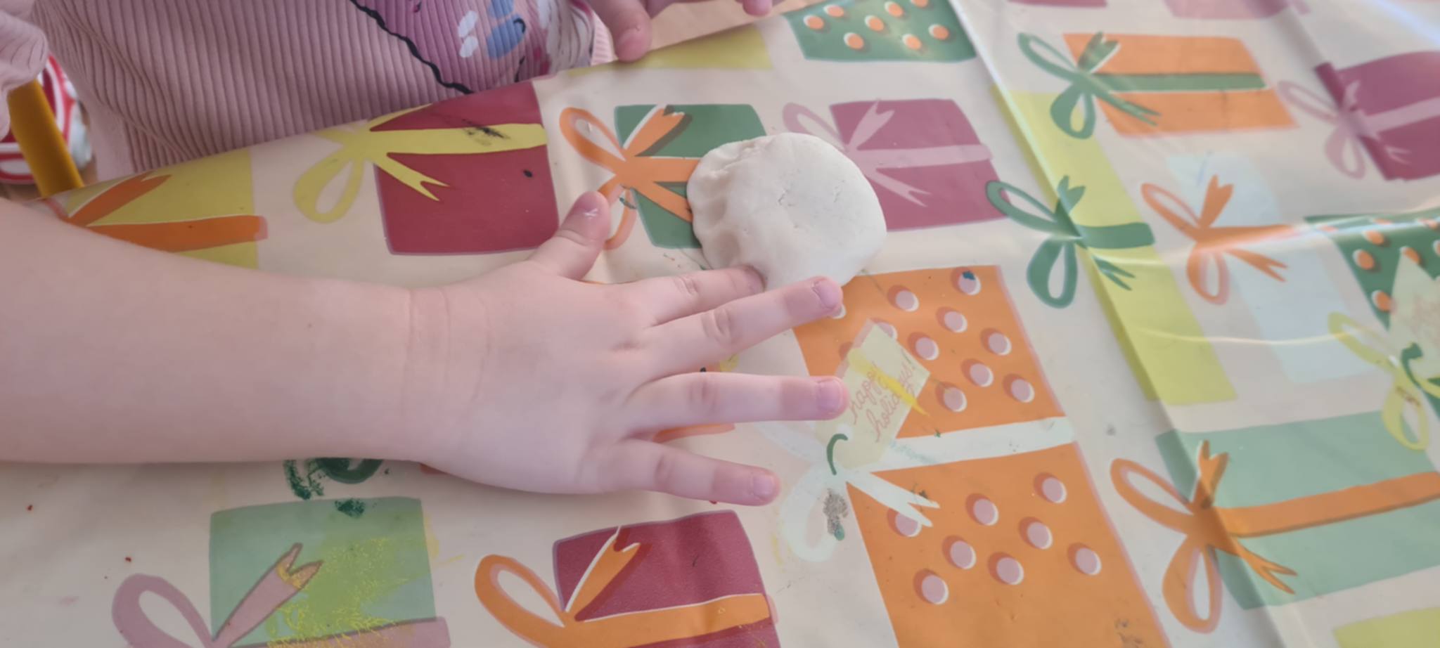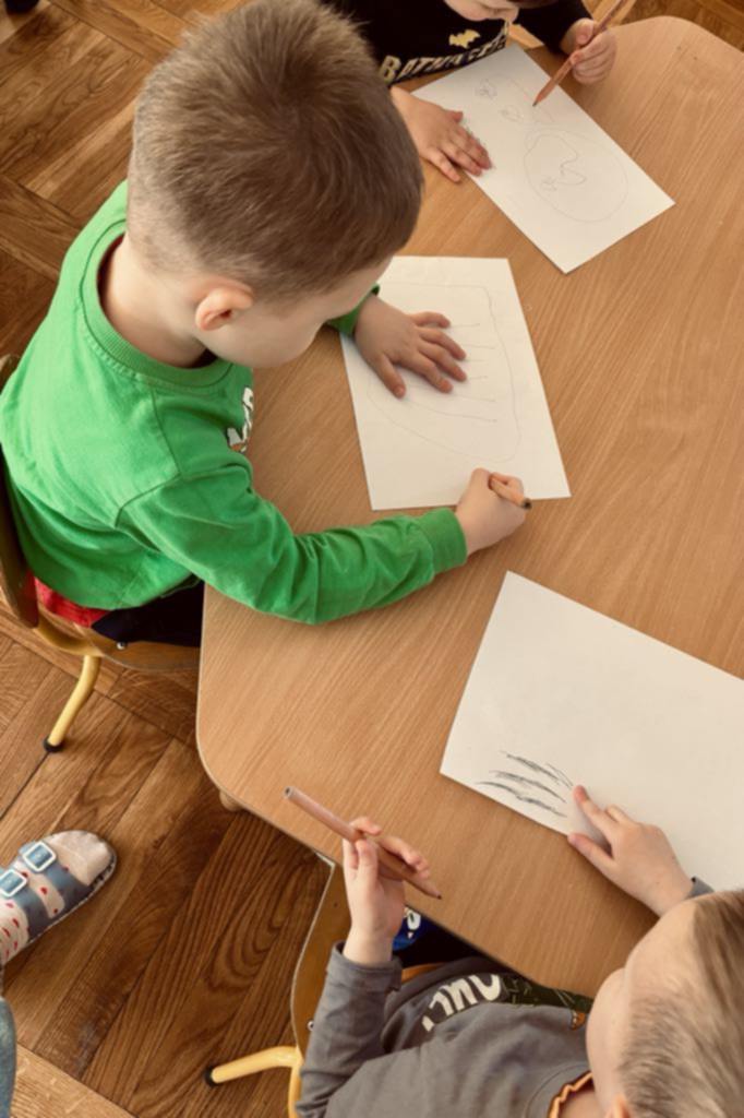 To był intensywny poranek. Najpierw porozmawialiśmy o tym, kim tak naprawdę był święty Mikołaj i dlaczego stał się symbolem dobroci i obdarowywania prezentami. Następnie, w mniejszych grupkach, wspólnie szukaliśmy prezentów ukrytych w sali. Na koniec wykonaliśmy pracę na rozciągniętym streczu, dzięki czemu powstały piękne, świąteczne krajobrazy.