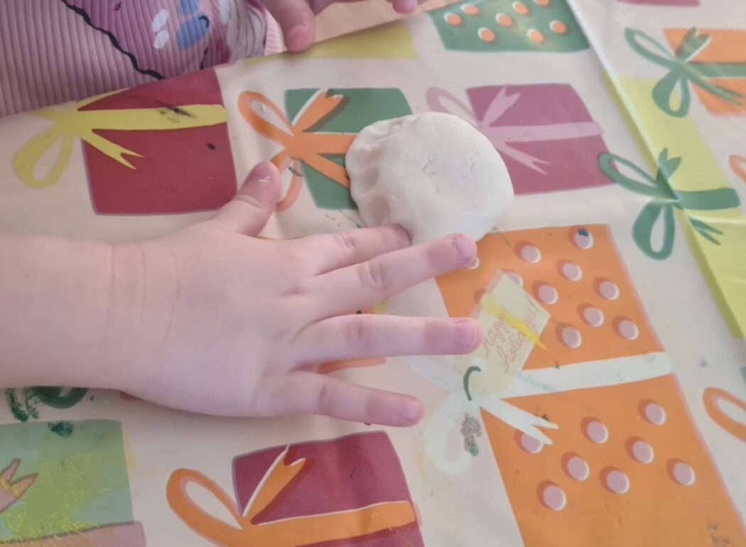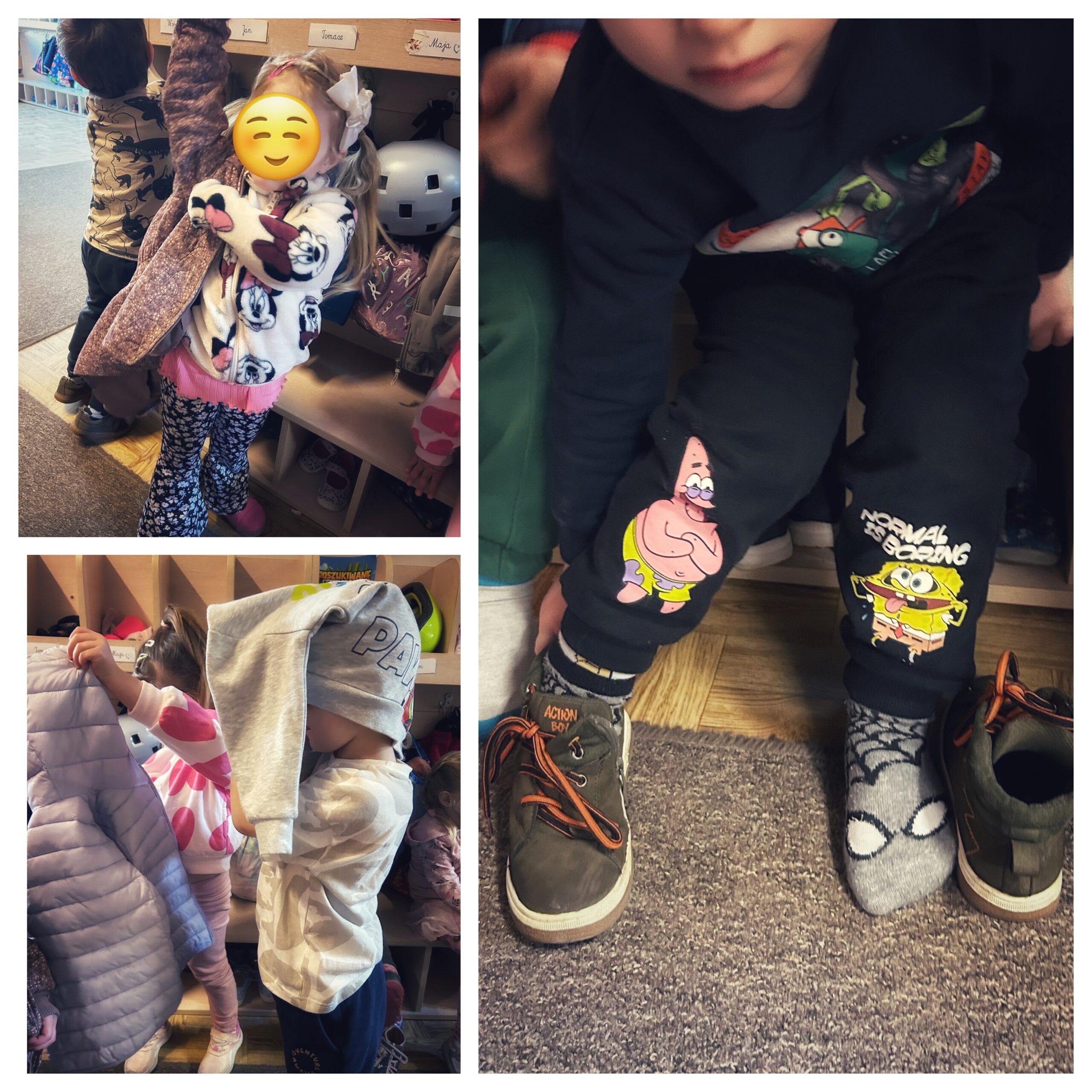 Uczestniczymy właśnie w cyklu zajęć dotyczących granic. Wiemy, że granice mają państwa oraz ludzie. Wiemy, co mają na myśli dorośli mówiąc „jestem na granicy”. Uczymy się też sygnalizować na co się zgadzamy, a na co nie. Dowiedzieliśmy się też, po co nam ubrania i dlaczego pewne części ciała muszą być zakryte..