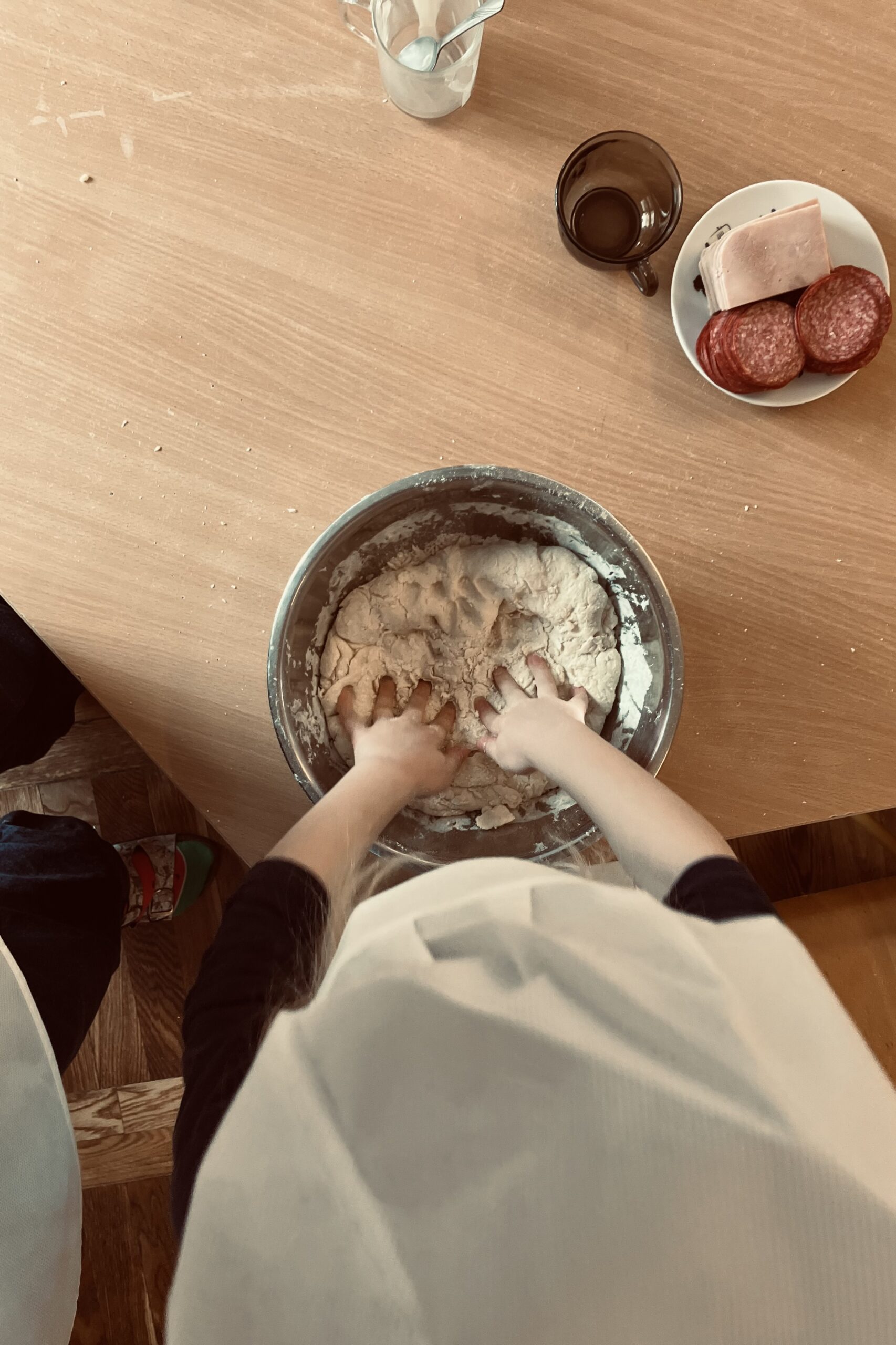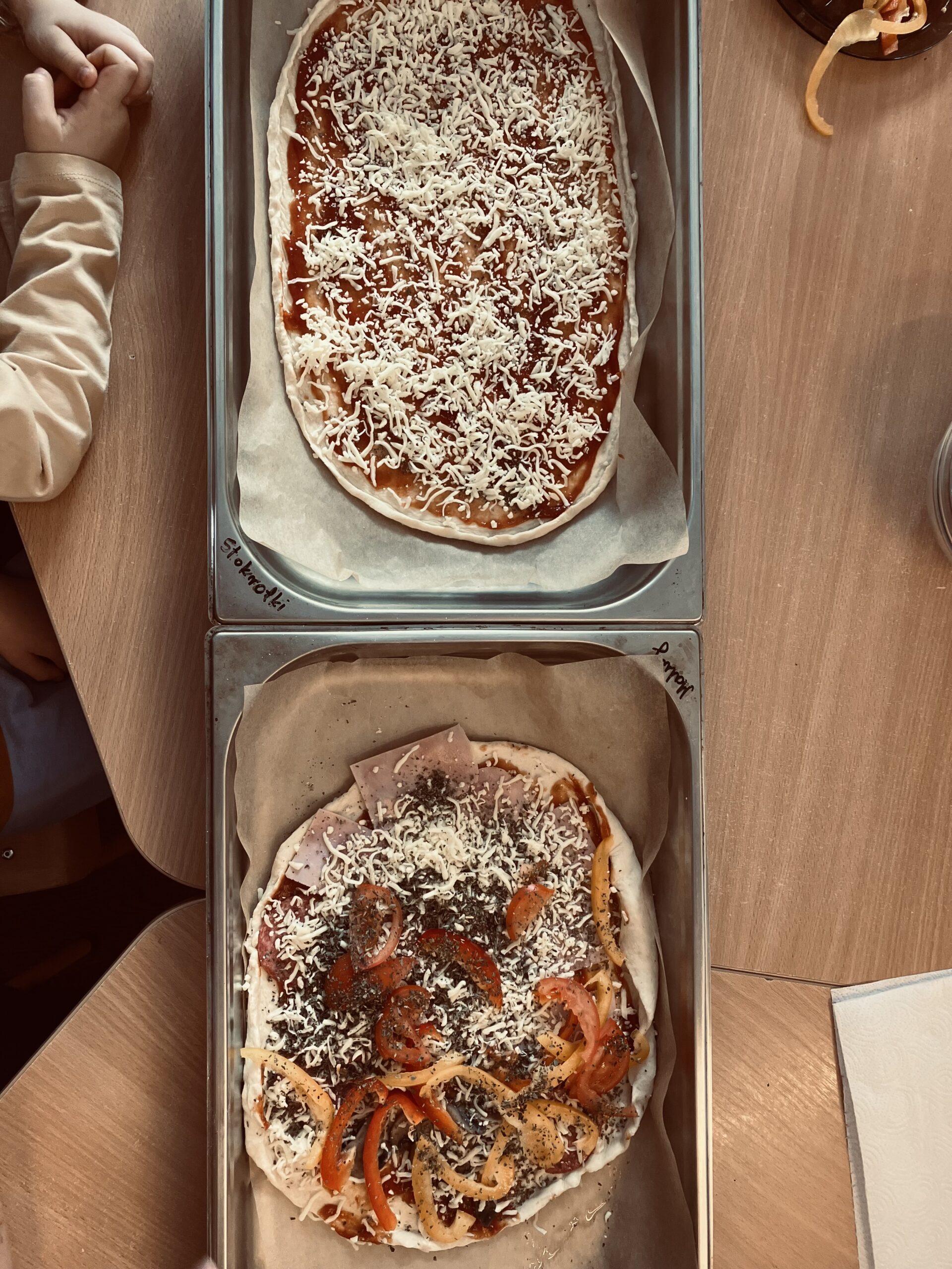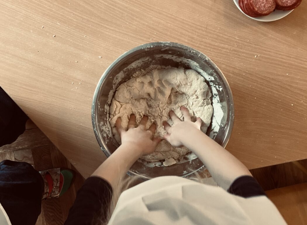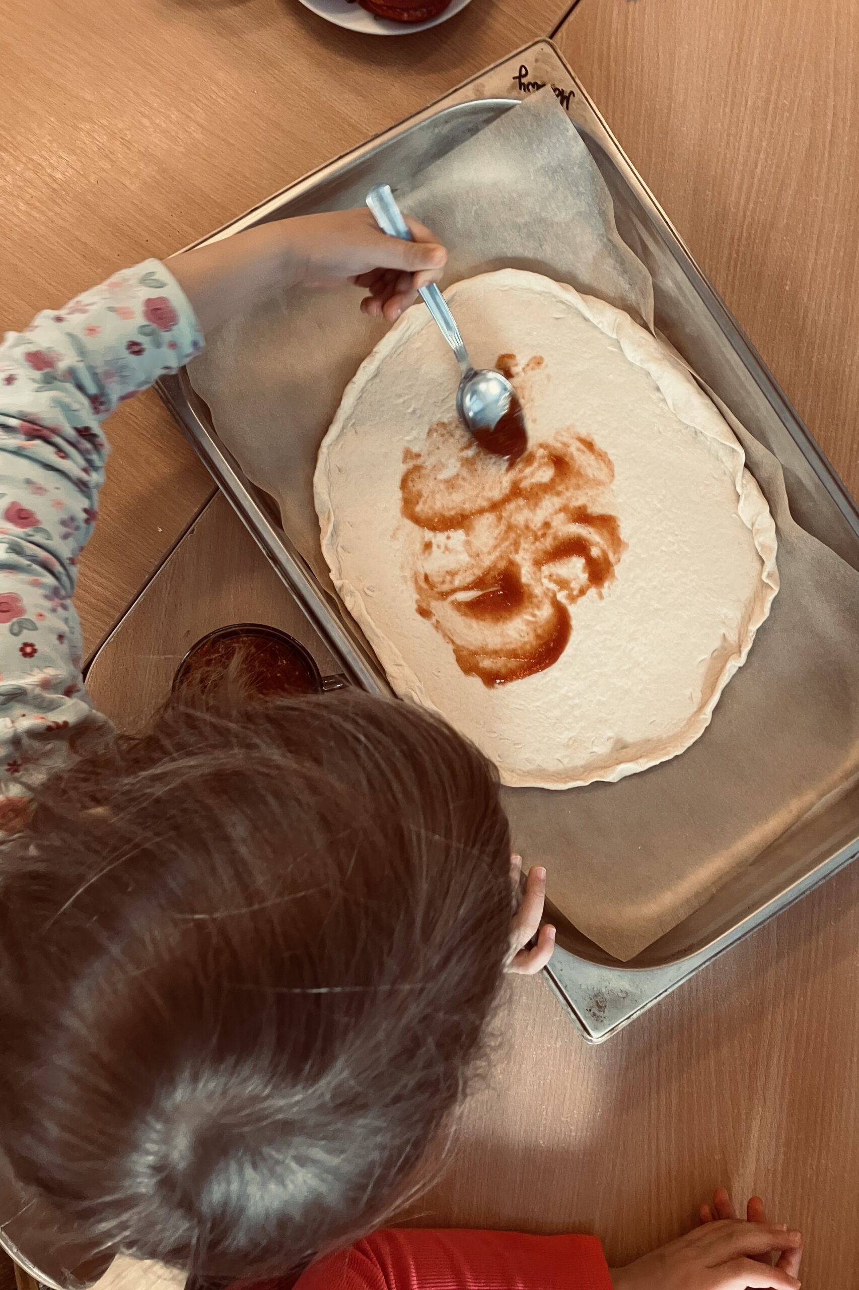 Zajęcia kulinarne u nas, to kreatywne warsztaty, podczas których samodzielnie wyrobiliśmy ciasto, smarowaliśmy je sosem i komponowaliśmy pizze z ulubionych składników (ser, szynka, pieczarki, pomidor, papryka, salami). Zajęcia nauczyły nas współpracy i zakończyły się ucztą. Kuchcikowo, to idealne połączenie zabawy sensorycznej z edukacją żywieniową. Po pizzy nie został nawet ślad, zniknęła błyskawicznie.