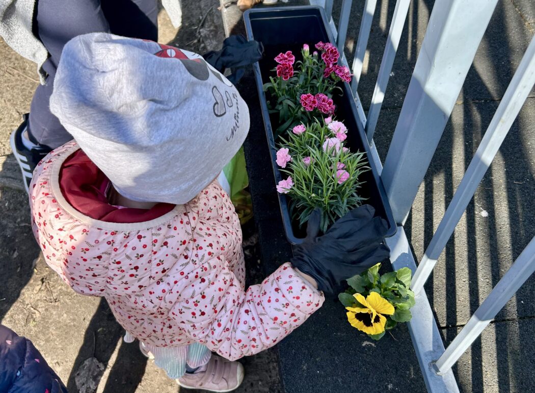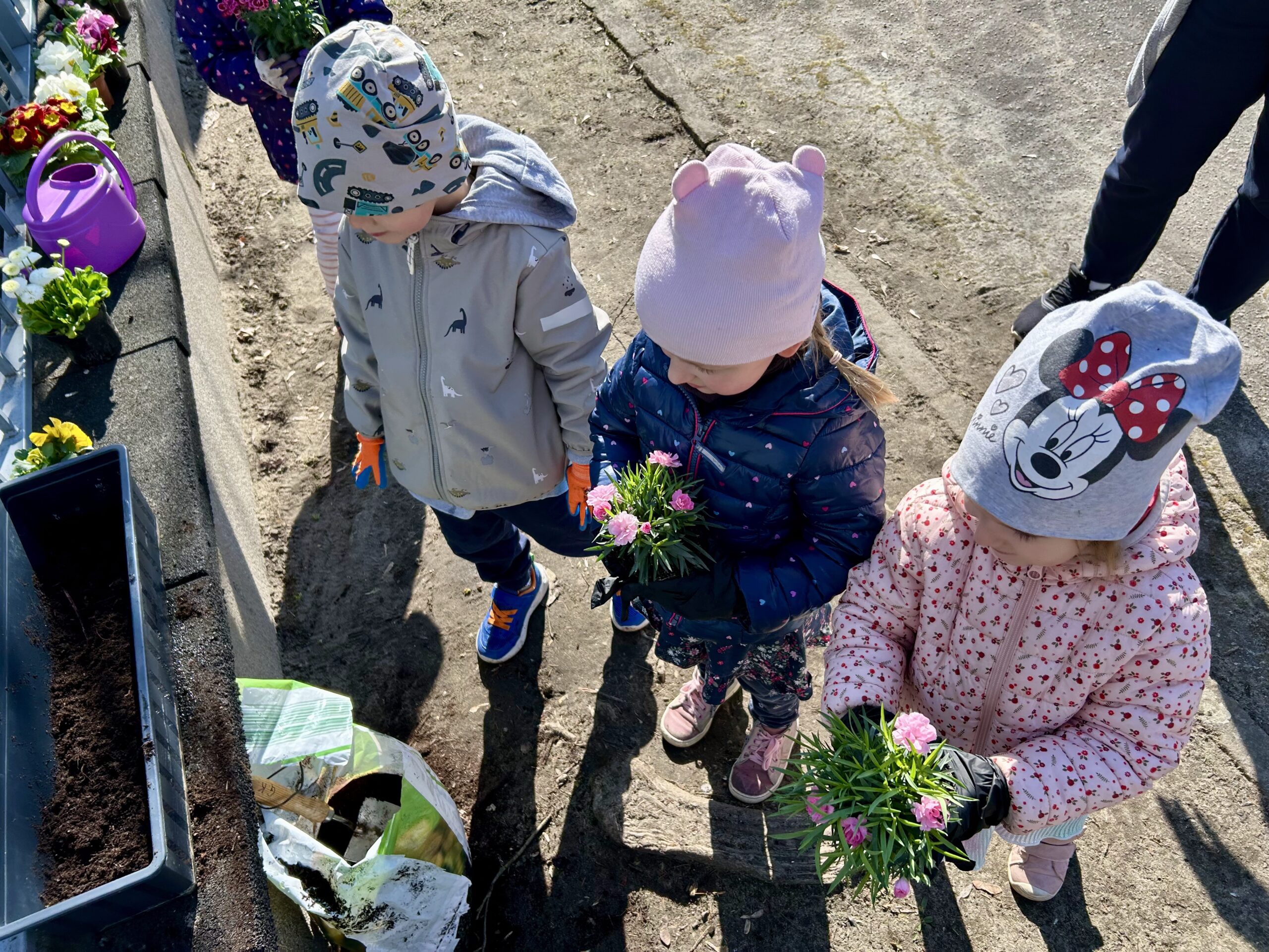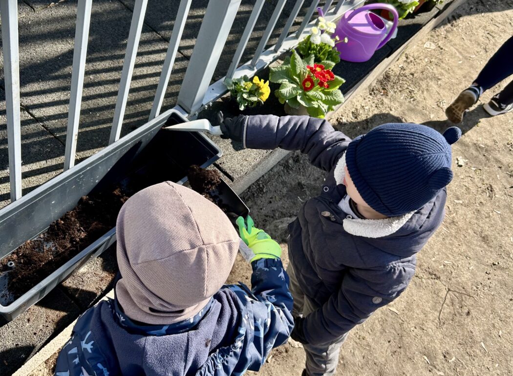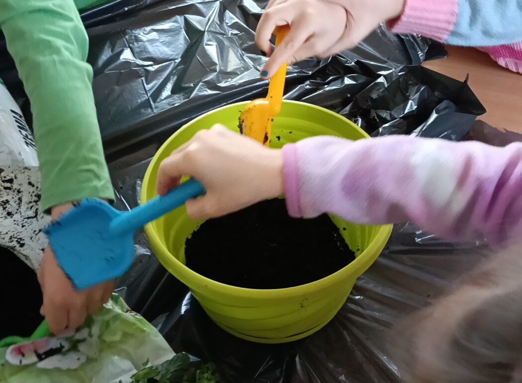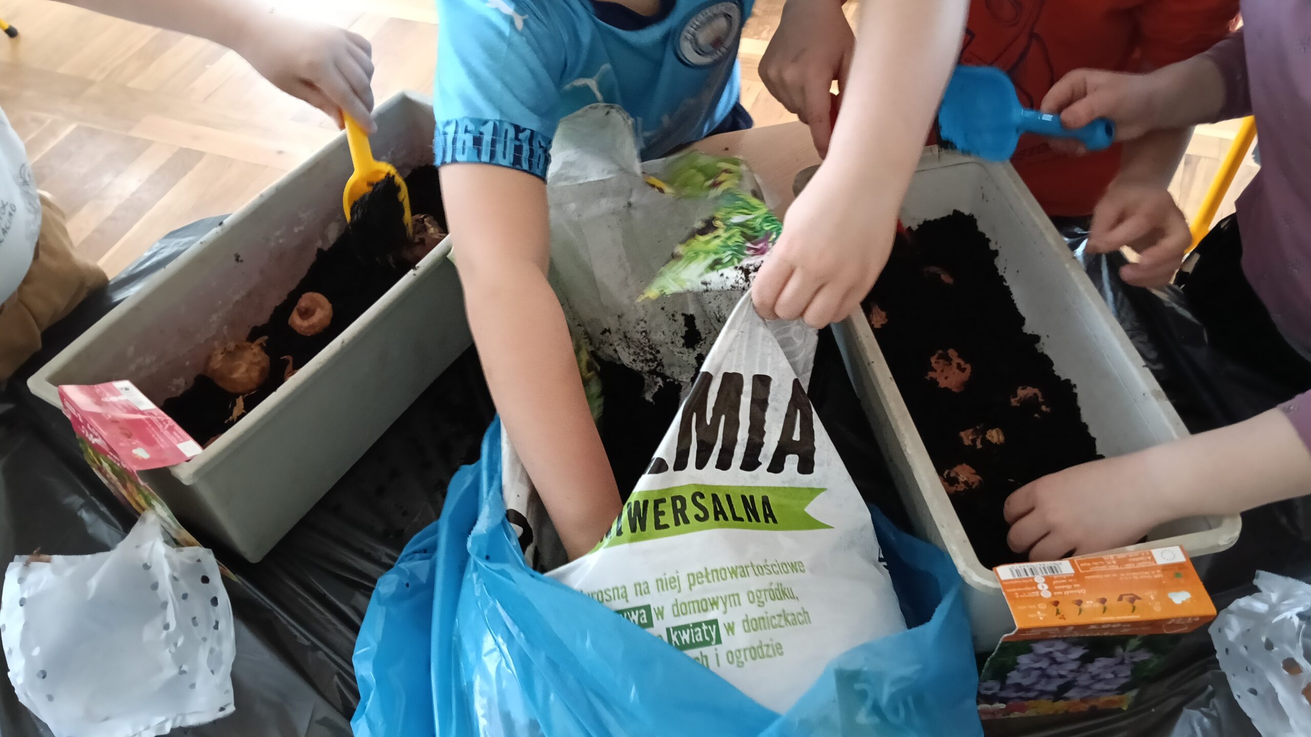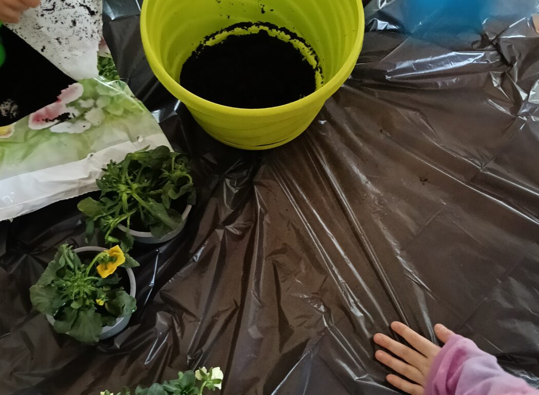 Przy okazji utrwaliliśmy nazwy różnych kwiatów i nauczyliśmy się, jak o nie dbać. Potem sami sadziliśmy roślinki do ziemi. Bardzo nam się to podobało!