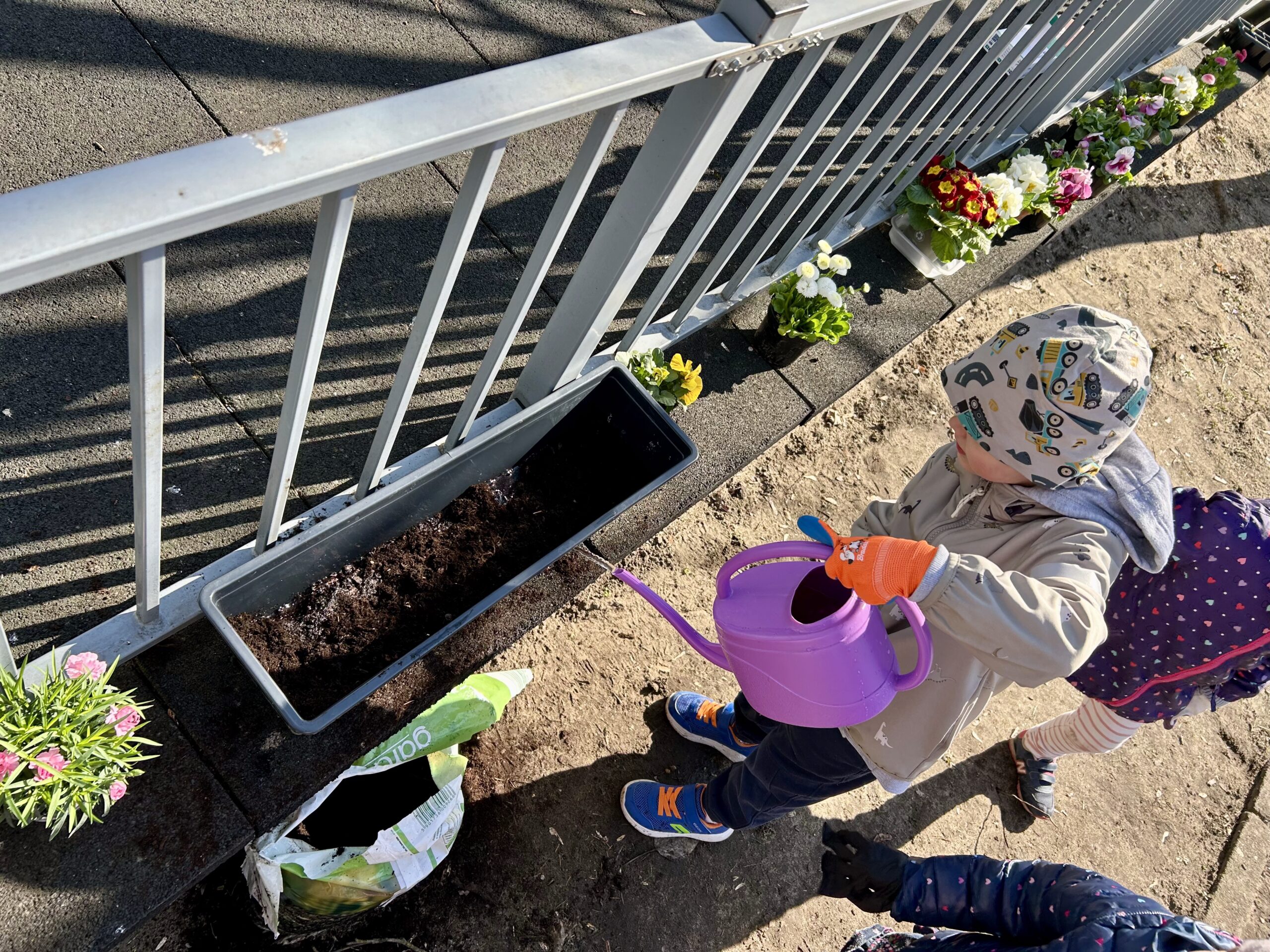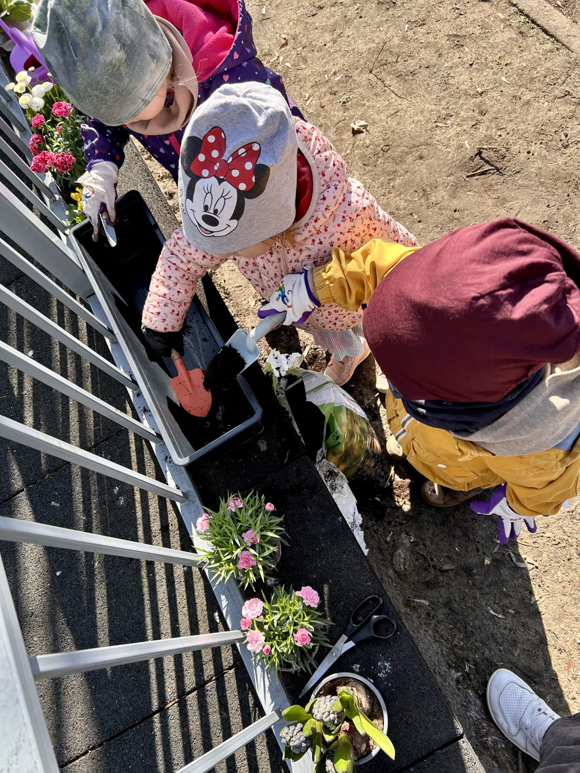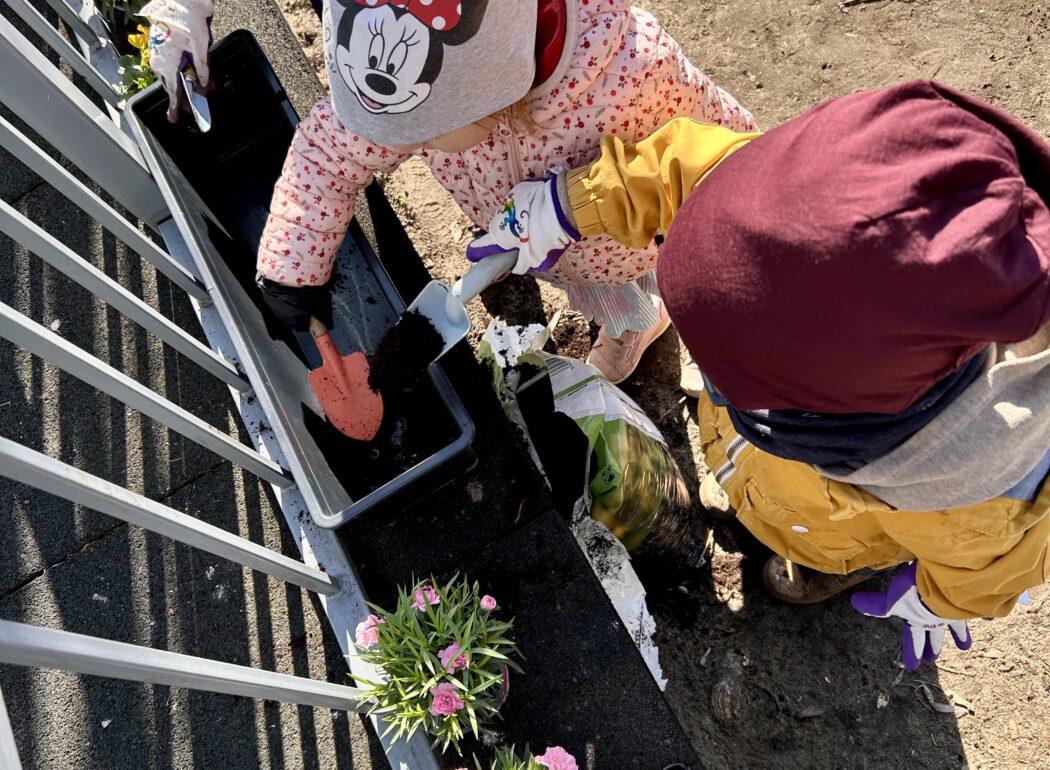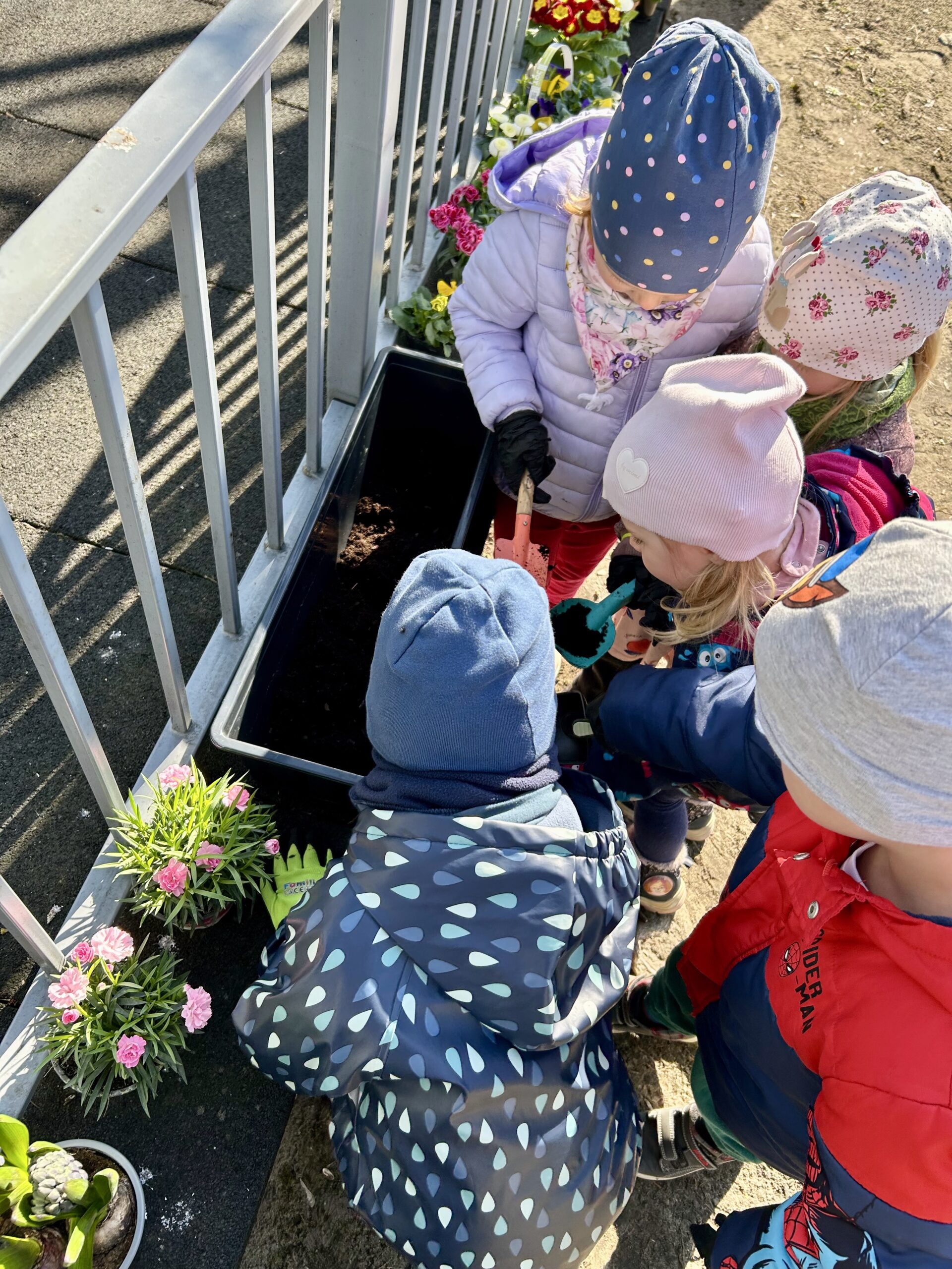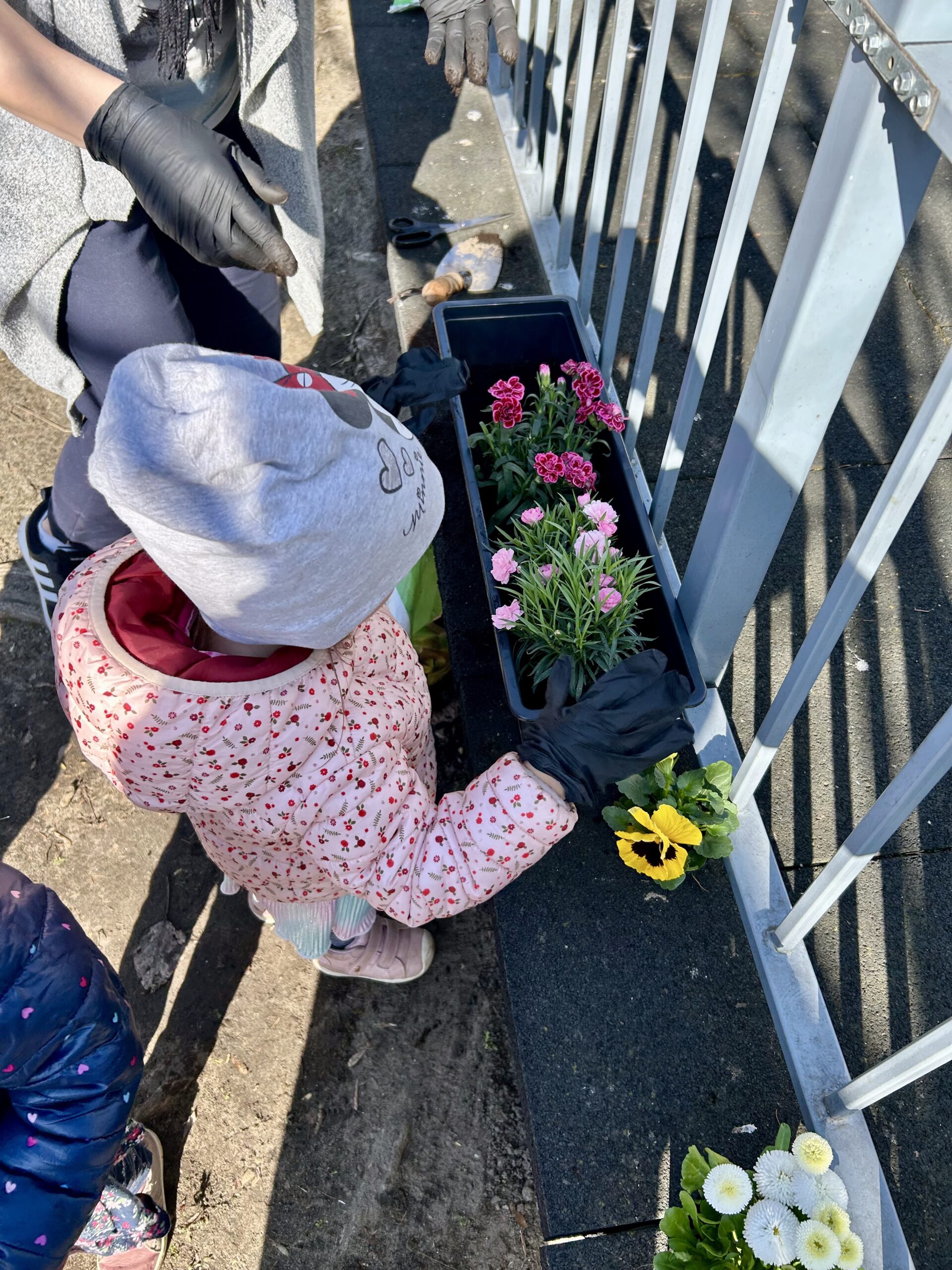 Przy okazji utrwaliliśmy nazwy różnych kwiatów i nauczyliśmy się, jak o nie dbać. Potem sami sadziliśmy roślinki do ziemi. Bardzo nam się to podobało!
