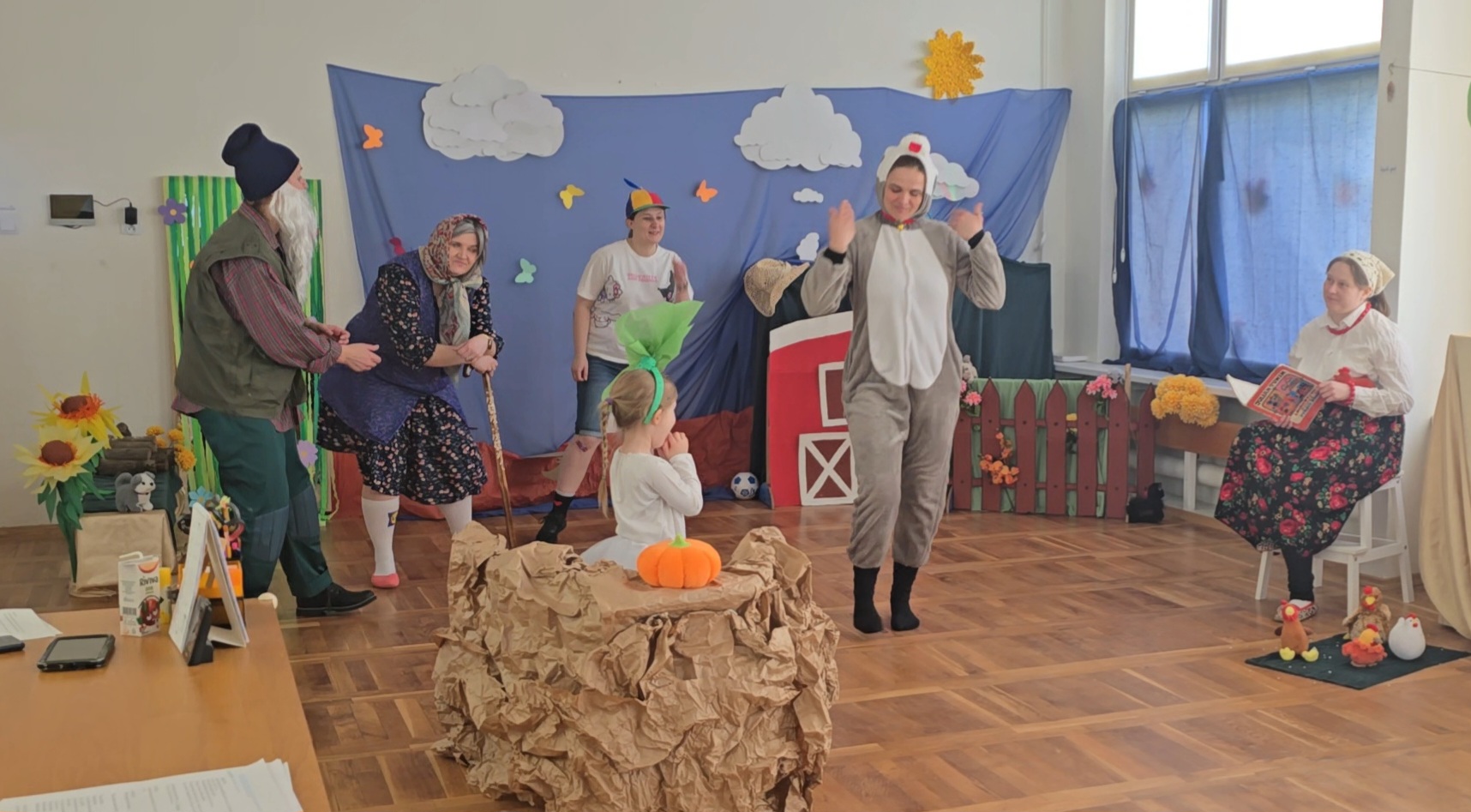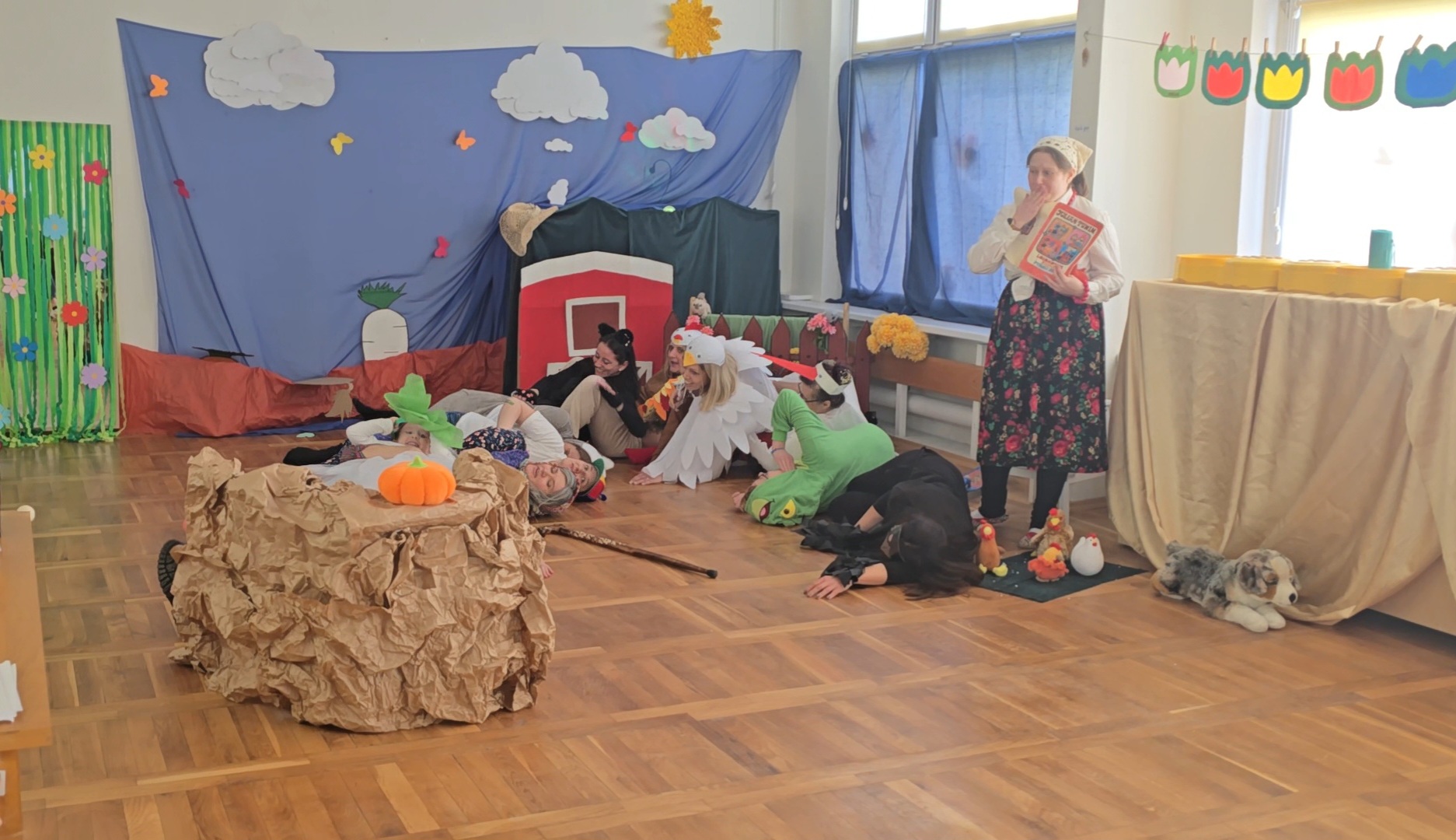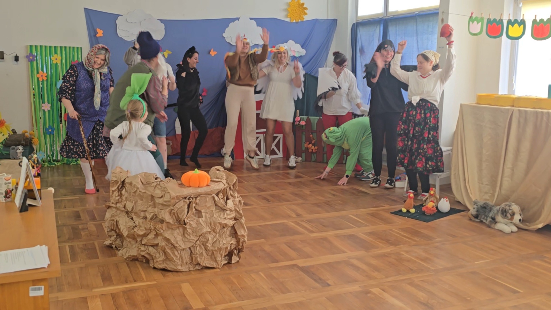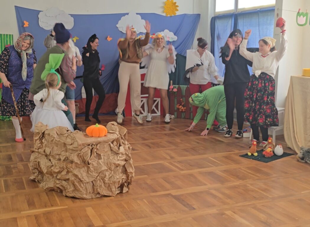 Dzień Babci i Dziadka świętowaliśmy inaczej niż do tej pory. Na moment nasza sala zamieniła się w ogród, w którym my, jako aktorzy odgrywaliśmy swoje role, wcielając się w postaci z „Rzepki” Juliana Tuwima. Po spektaklu, wspólnie z naszymi gośćmi, wykonaliśmy dla nich zakładki do książek.