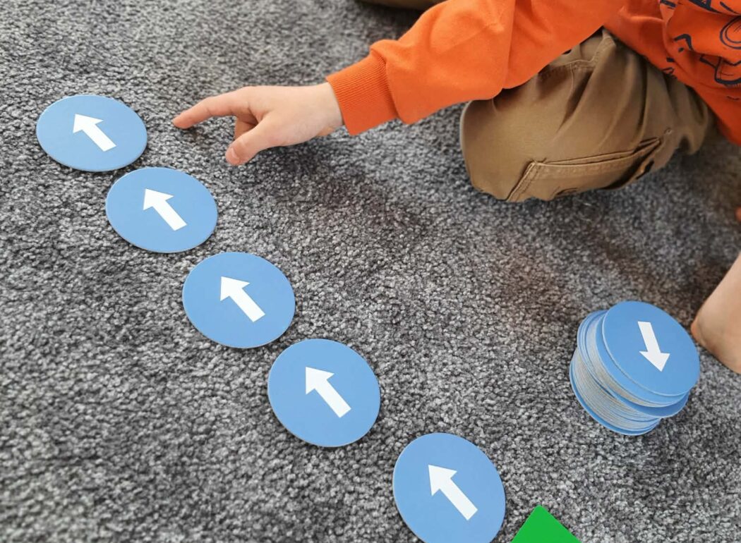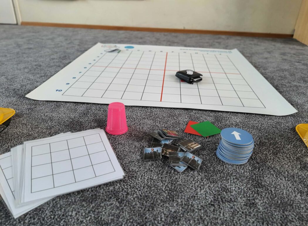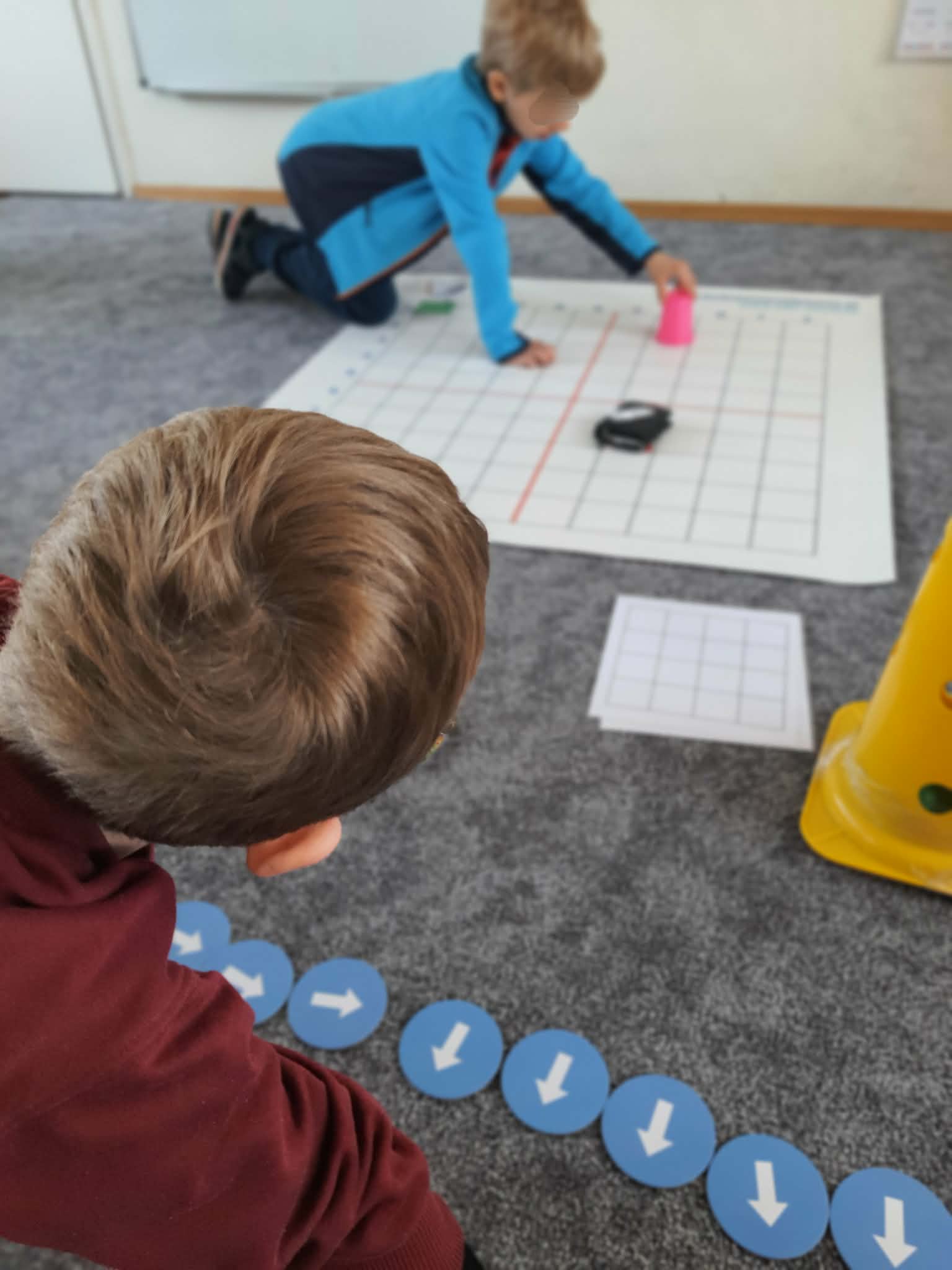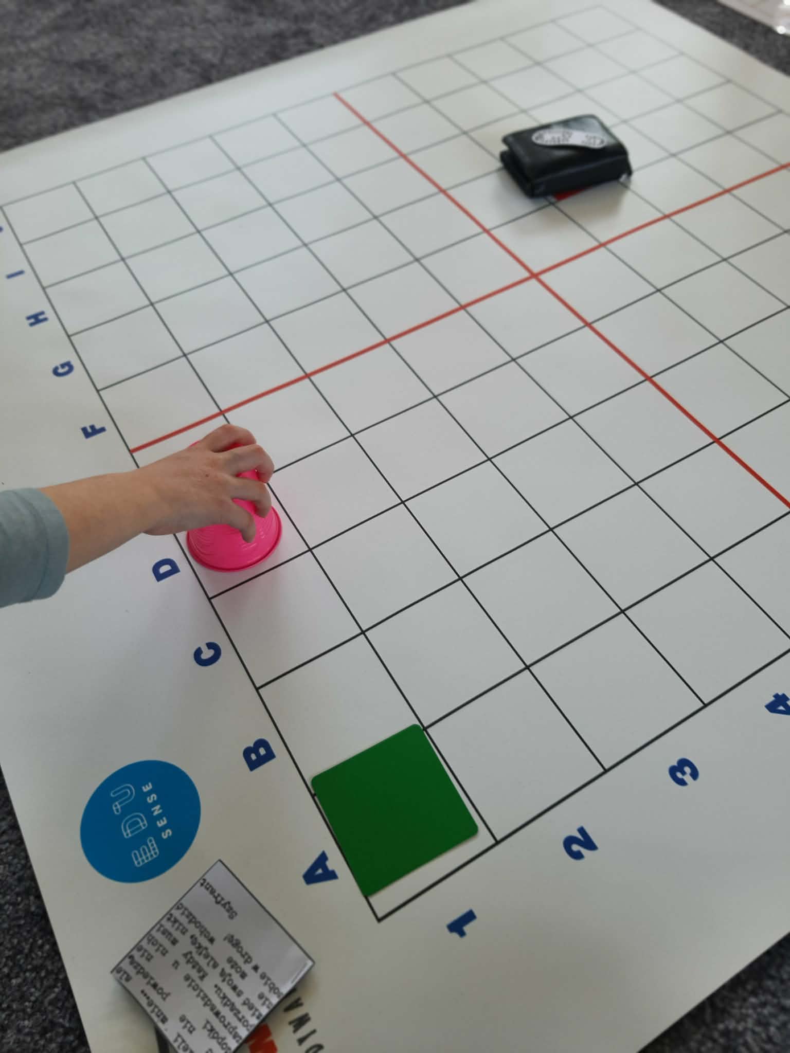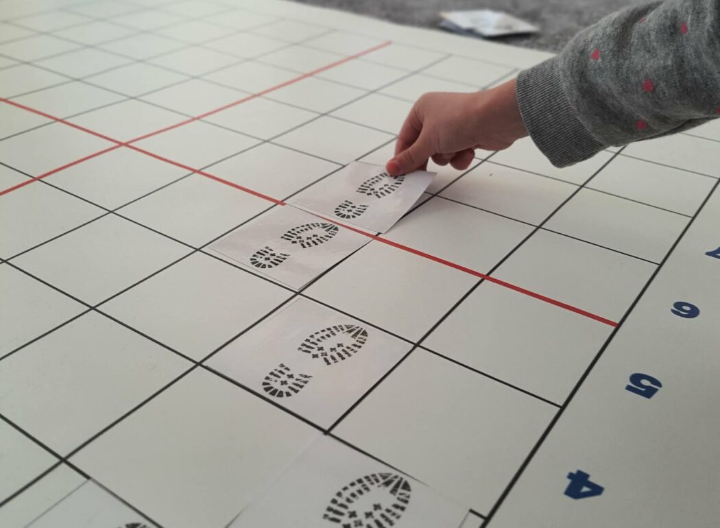 Nocne tropienie: Dzieci z niezwykłym skupieniem odczytywały współrzędne z „czarnej mapy” i odtwarzały trasę ucieczki Szyfranta na macie do kodowania.