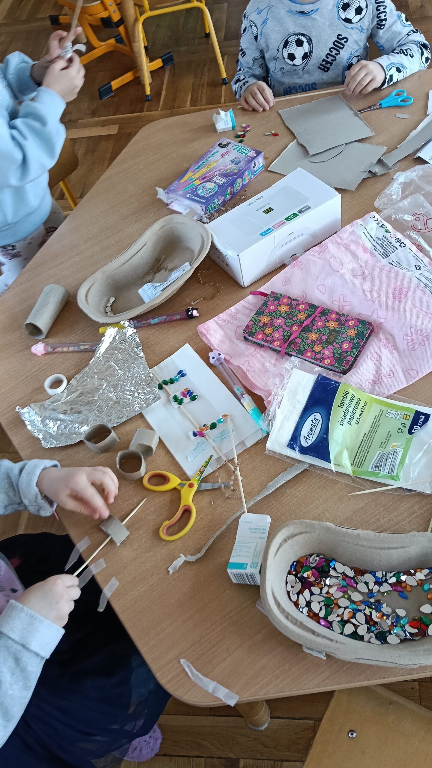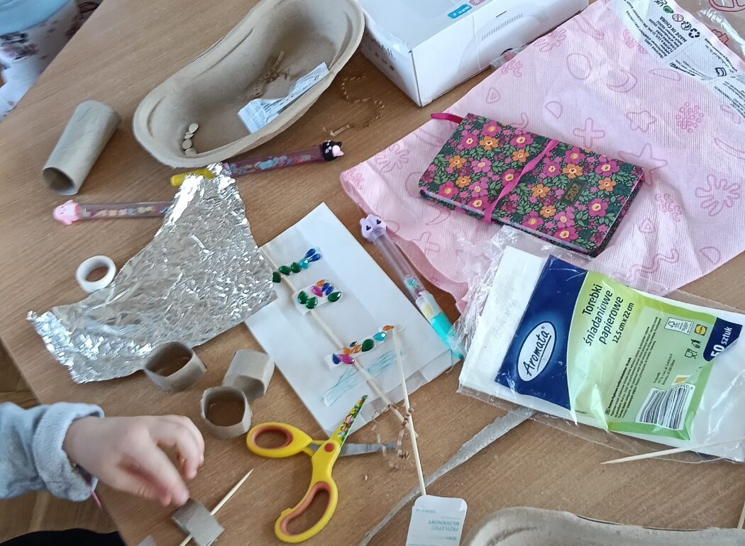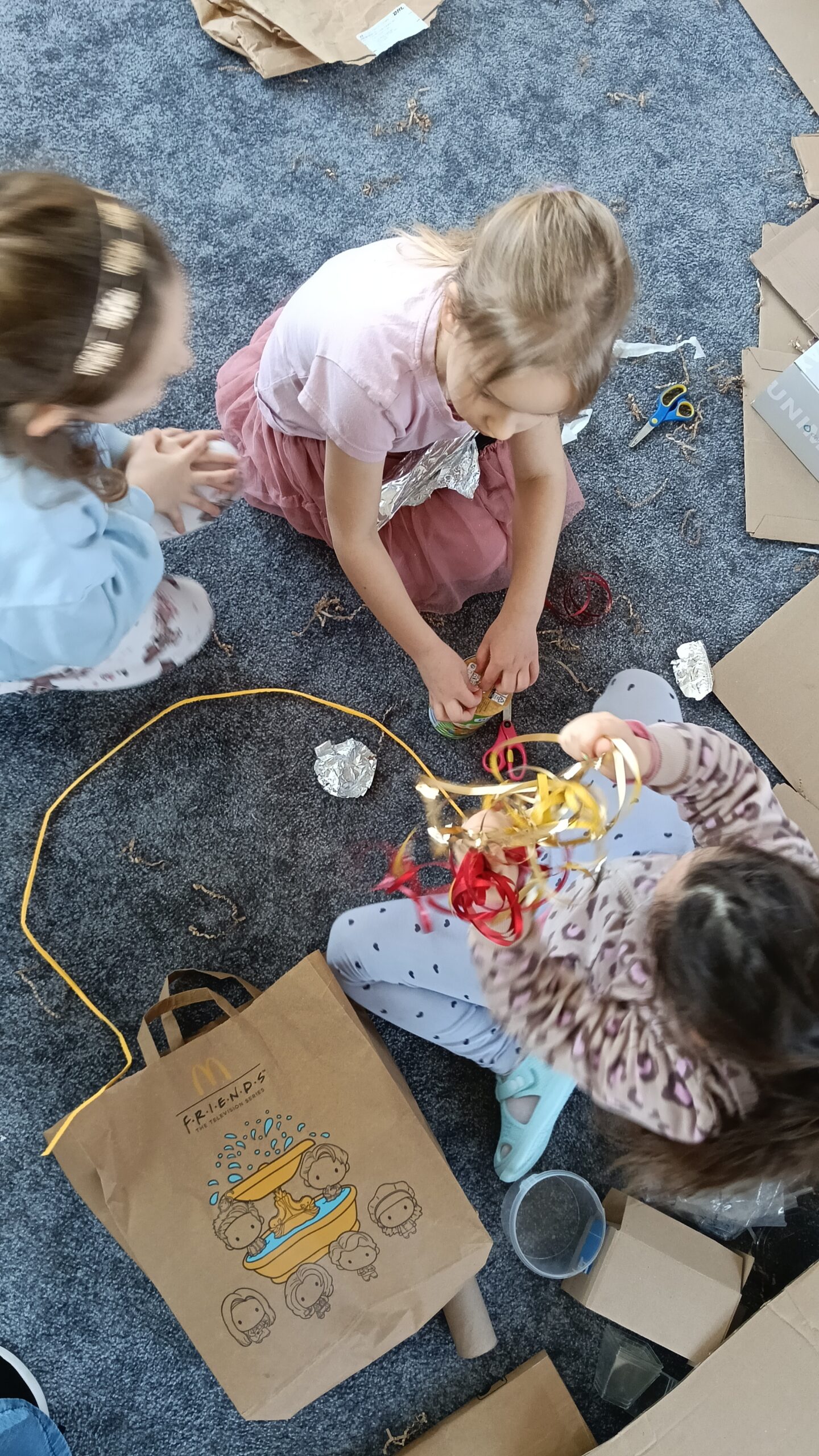 Zabawki zniknęły. Pojawiły się kartony, tektura, koraliki, folia, sznurki, cekiny i inne materiały. Misja była jedna. Stworzyć „coś z niczego”.