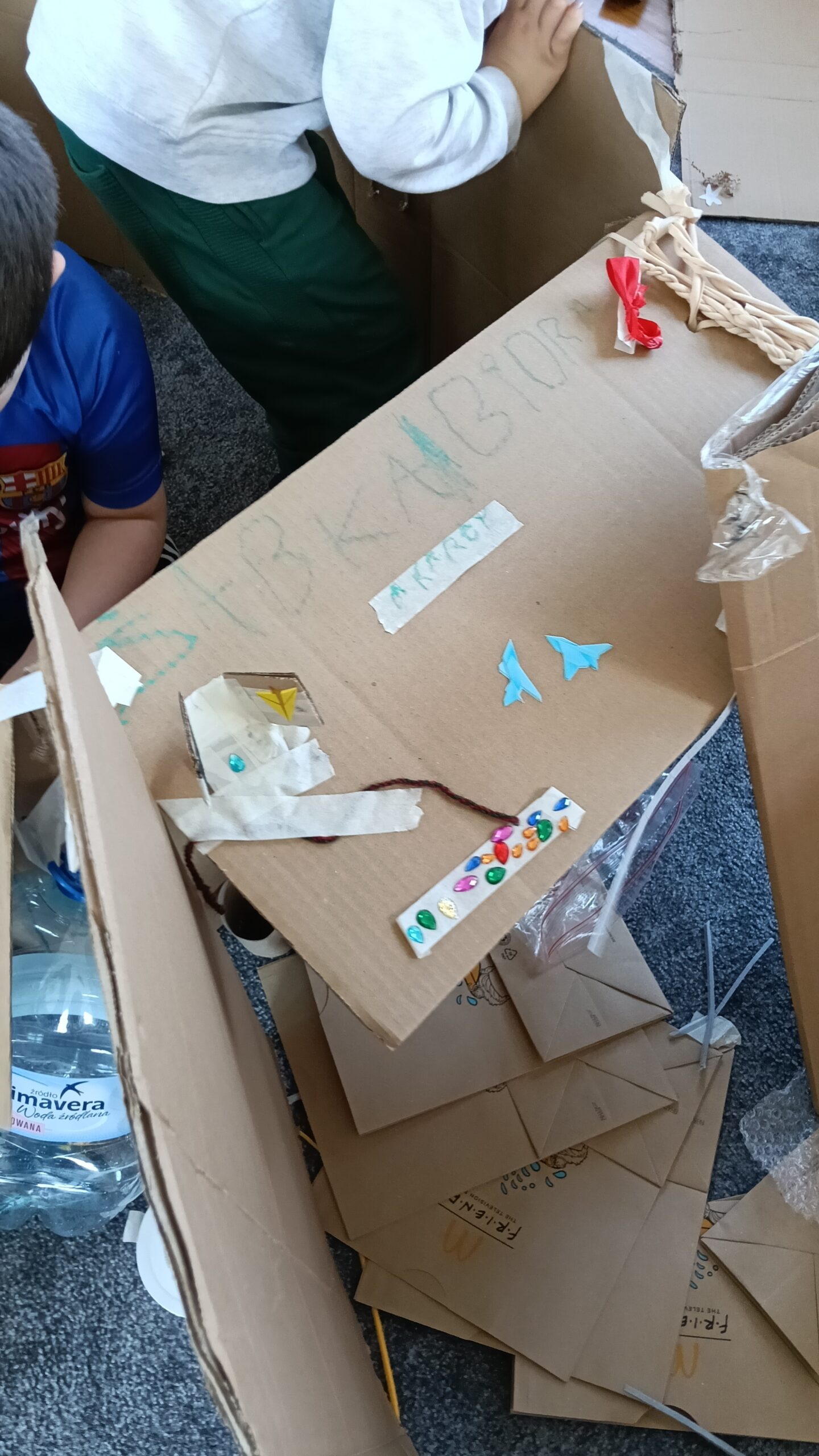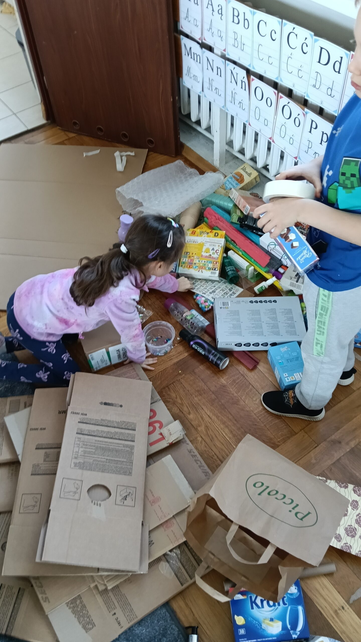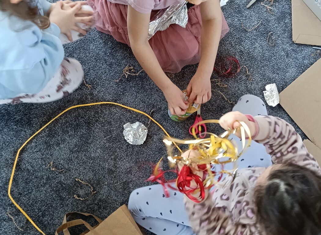 Zabawki zniknęły. Pojawiły się kartony, tektura, koraliki, folia, sznurki, cekiny i inne materiały. Misja była jedna. Stworzyć „coś z niczego”.