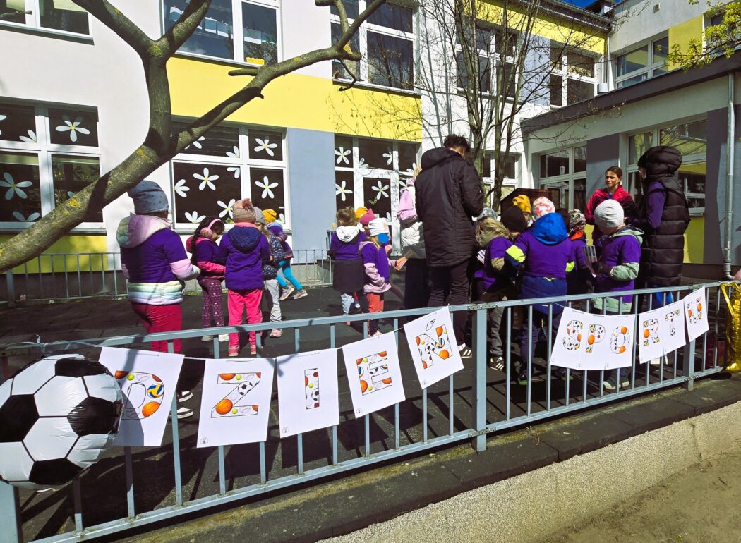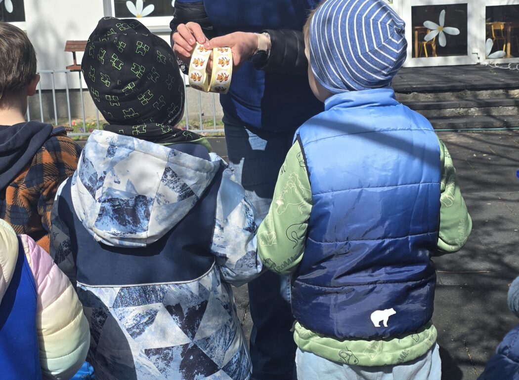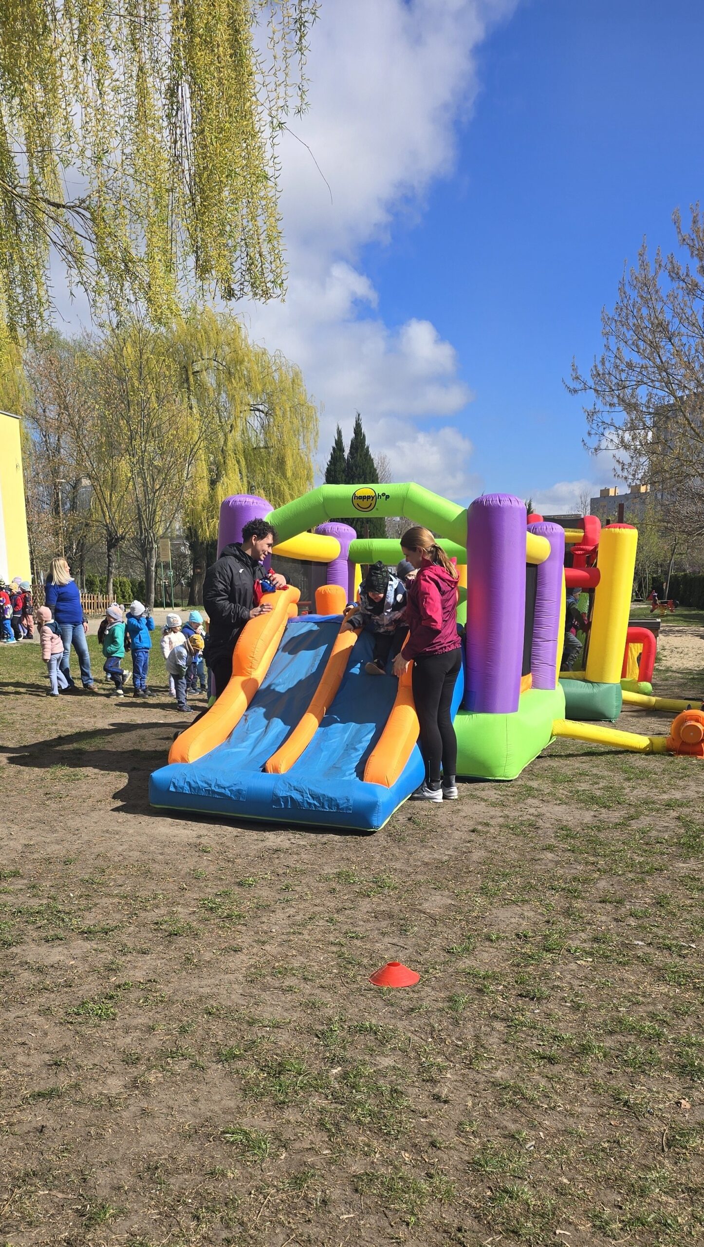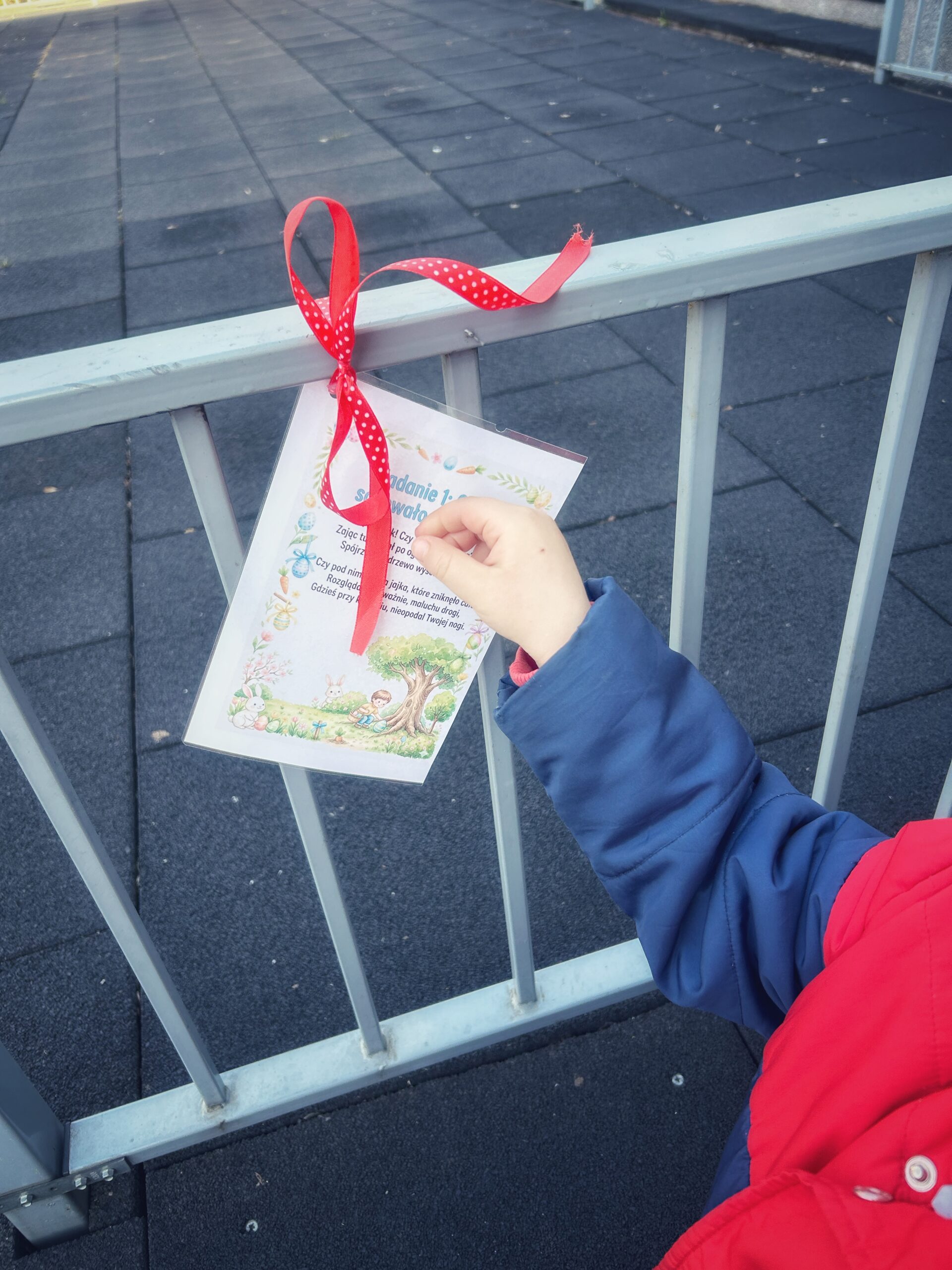 Gdy brzuszki były już pełne, a nastroje wyśmienite, nagle usłyszeliśmy głośne pukanie do drzwi. Zaintrygowani pobiegliśmy sprawdzić, kto to i znaleźliśmy tajemniczy list – list od Wielkanocnego Zajączka zachęcający do poszukiwania upominków w naszym ogrodzie. Jednak aby je zdobyć, musieliśmy rozwiązać kilka zadań i wziąć udział w wielkanocnej grze terenowej. Czym prędzej ruszyliśmy na poszukiwania. Każde zadanie było inną, radosną przygodą.