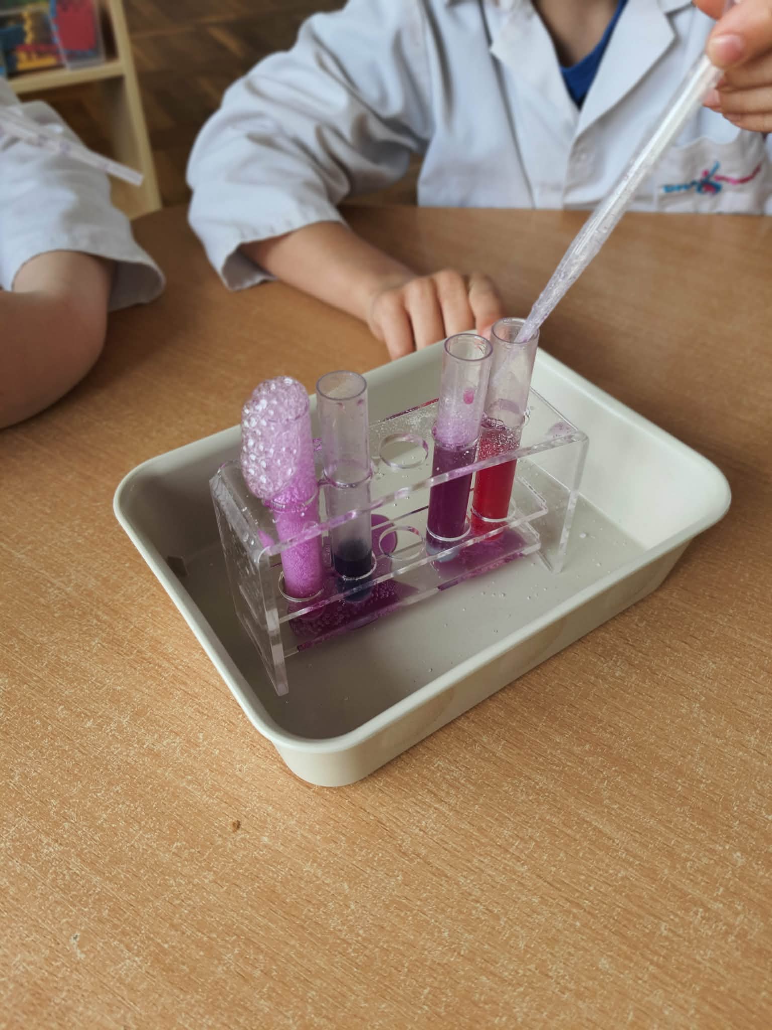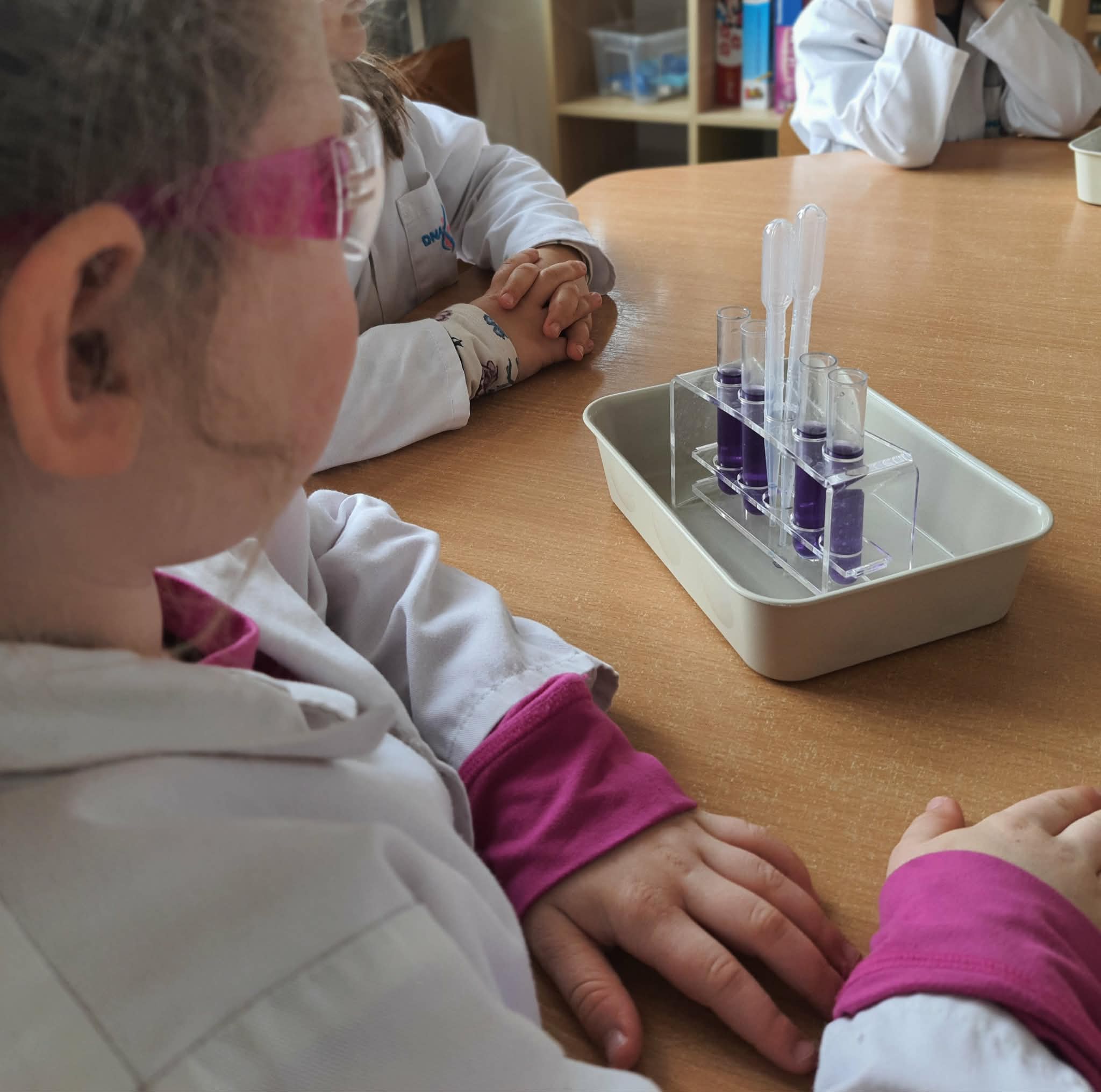 Czy nauka może być kolorowa i radosna? Nasze ostatnie warsztaty DNA o kwasach i zasadach udowodniły, że tak! Z ogromnym zaangażowaniem testowaliśmy domowe substancje, tworząc barwne roztwory i obserwując efektowne reakcje chemiczne.