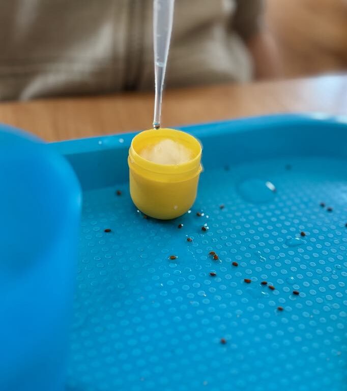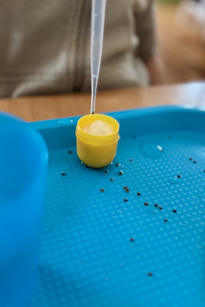 Doskonale radzimy sobie już z precyzyjnymi, delikatnymi ruchami i coraz lepiej potrafimy się koncentrować na zadaniu. Udowodniliśmy to, zakładając mini hodowlę rzeżuchy. Podlewanie nasionek pipetą było świetną zabawą.