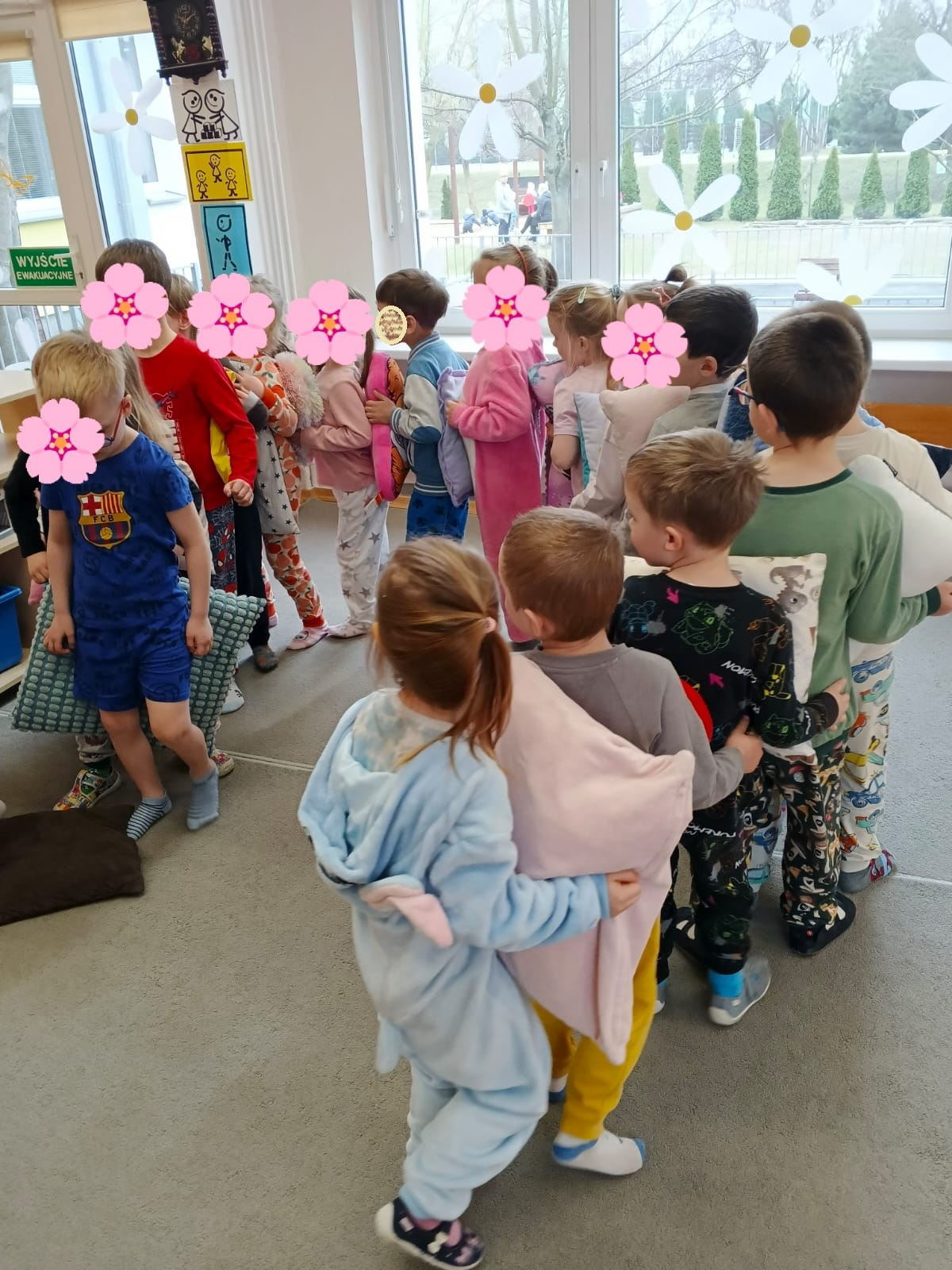 Z okazji powitania wiosny zorganizowaliśmy piżama party, jako symbol budzącej się do życia przyrody – uczestniczyliśmy w pokazie mody piżamowej, braliśmy udział w „wojnie na poduchy” oraz radosnych zabawach integracyjnych, pełnych śmiechu i dobrej energii.