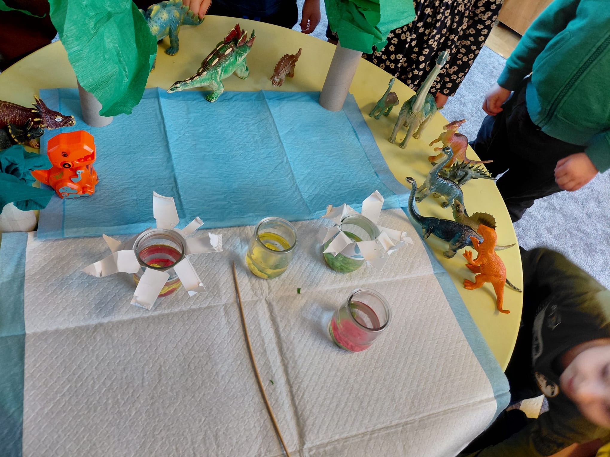 W Dzień Dinozaura uczestniczyliśmy w doświadczeniu polegającym na erupcji wulkanu, wykazaliśmy się znajomością niektórych dinozaurów.