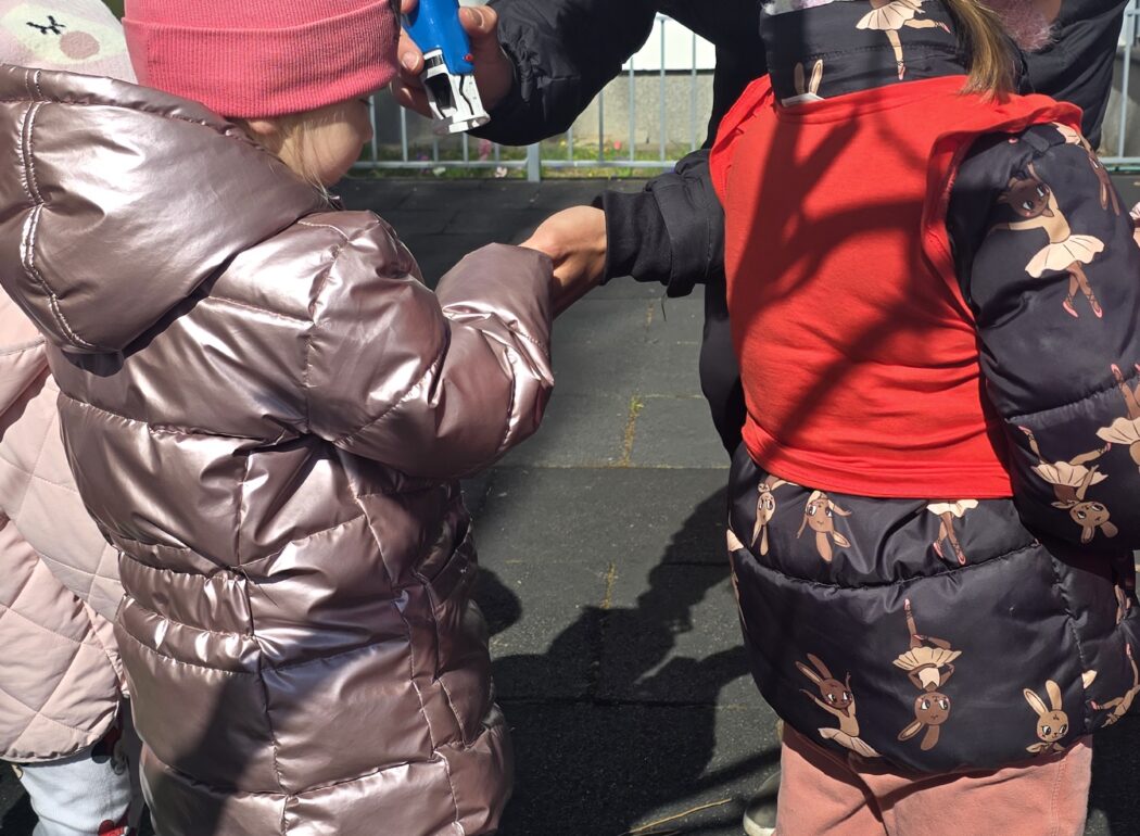 Skupiliśmy się dziś na bardzo ważnym aspekcie – czystych dłoniach. Rozmawialiśmy o tym, dlaczego jest to tak ważne. Przeprowadziliśmy doświadczenie i na własnej skórze zobaczyliśmy jak łatwo zarazki i bakterie przenoszą się między ludźmi i że wcale nie tak łatwo się ich pozbyć. W trakcie kolejnego eksperymentu przekonaliśmy się, jaką magiczną moc ma mydło i jak skutecznie “odstrasza” cały brud. Poznaliśmy i wielokrotnie przećwiczyliśmy etapy mycia rąk, a także zastanowiliśmy się nad tym, kiedy należy je myć. Na koniec w naszej łazience pojawiły się ilustracje zarazków, by przypominać nam o myciu rączek, a także obrazki ilustrujące poszczególne etapy mycia rąk.