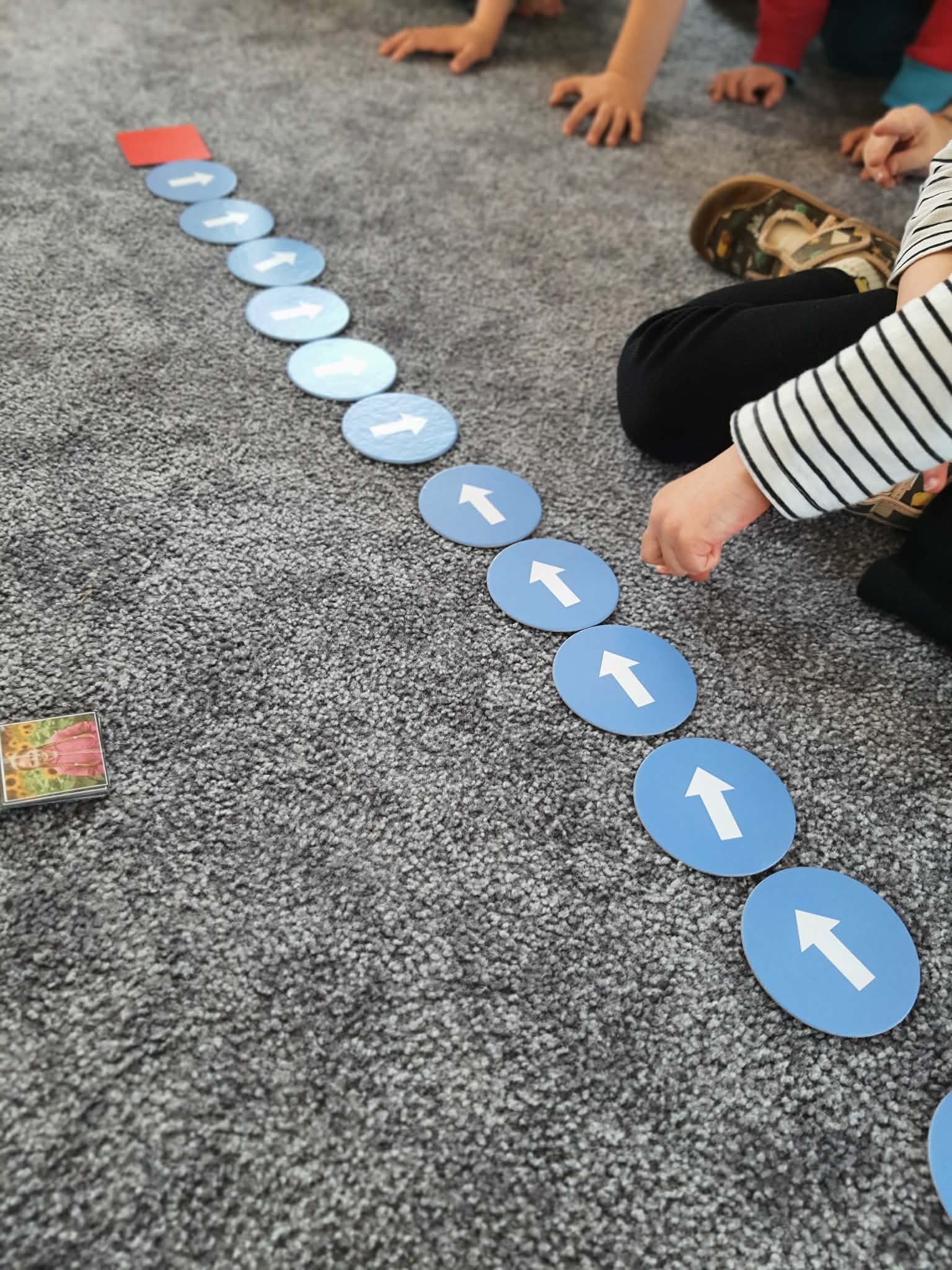 Pamiętając o Dniu Drzewa wysłuchaliśmy wiersza ” Zielone serce” i rozmawialiśmy o tym, dlaczego drzewa są dla nas tak ważne. Następnie ćwiczyliśmy percepcję słuchową zamieniając się w sowę. Byliśmy też szukającymi domku, skaczącymi wiewiórkami. Rozpoznawaliśmy cyfry robiąc zimowe zapasy, a na końcu kreśliliśmy po śladzie w rytm krótkiej rymowanki.