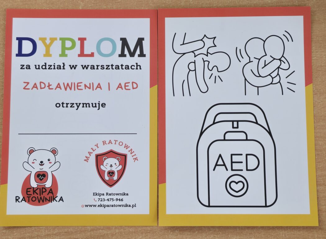 Wiemy już, jak ważne jest bezpieczne zachowanie podczas posiłków. Wiemy, że rozmowy, śmiech, czy bujanie na krześle, mogą doprowadzić do zakrztuszenia. Dzięki warsztatom z ratowniczką medyczną, potrafimy udzielić pomocy w takiej sytuacji. Podczas zajęć poznaliśmy też budowę ludzkiego ciała. Bez trudu znajdujemy przeponę. Sprawdziliśmy też, jak działa urządzenie ratujące życie, jakim jest defibrylator AED, który można spotkać w wielu miejscach publicznych. Najważniejsze jednak jest , to iż wiemy, że udzielanie pierwszej pomocy jest łatwe i nie należy się tego bać.