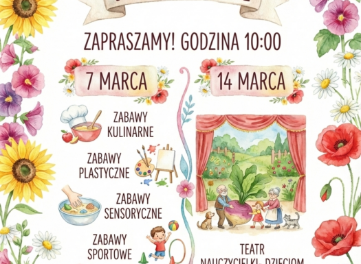 Zapraszamy na Drzwi Otwarte 7 marca 2026 r. godz. 10:00 zajęcia dla dzieci i rodziców oraz 14 marca 2026 r. godz. 10:00 - Teatr
